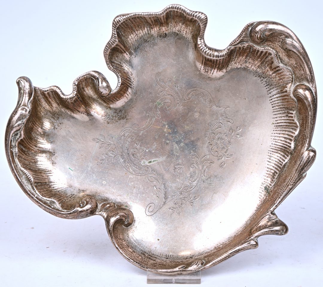 A vintage silver-plated metal nut dish, marked. -
