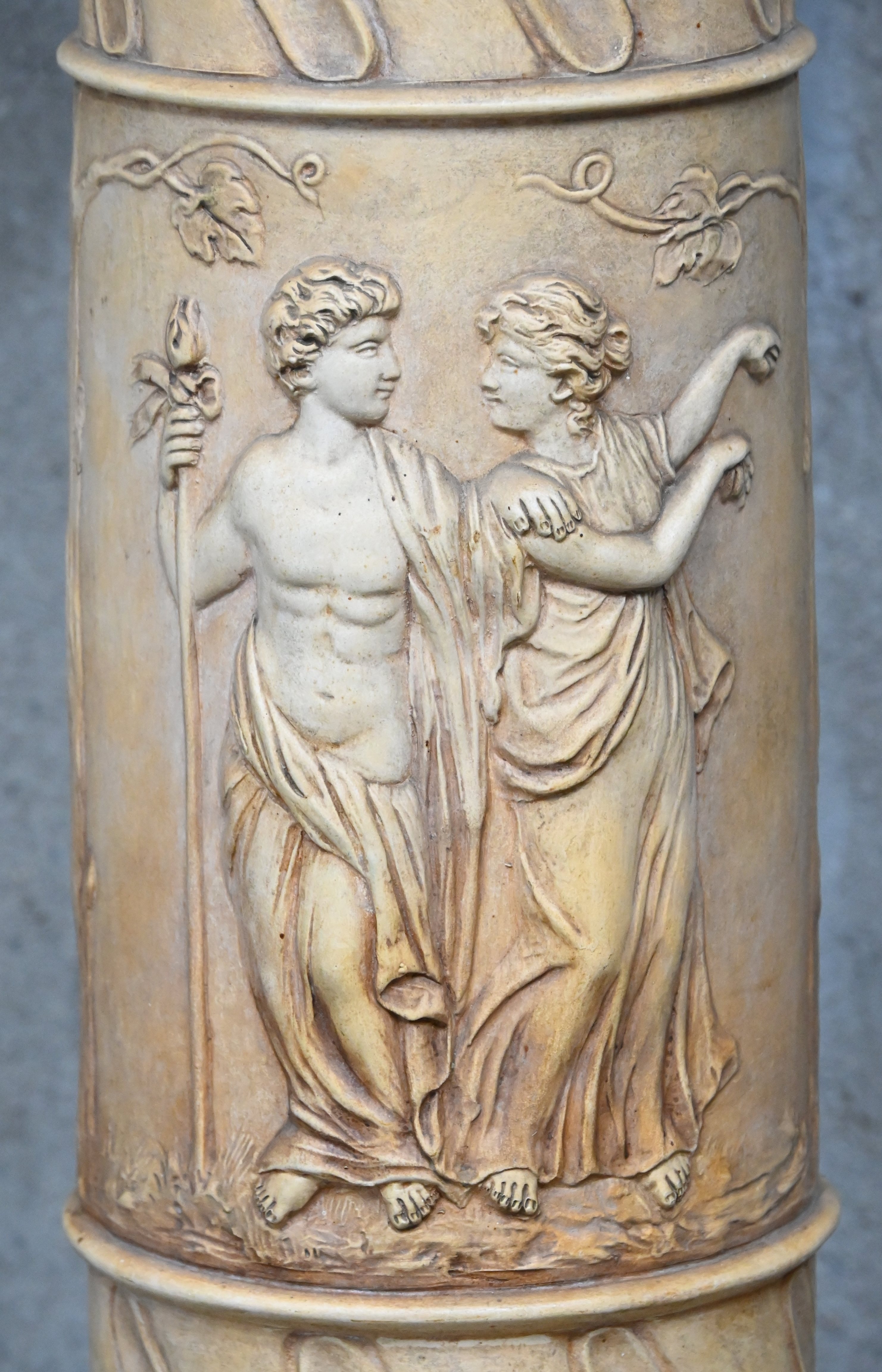 Een wit marmeren beeld van een deels gemumificeerde vrouw omhuld door slangen. Gesigneerd Elmer.