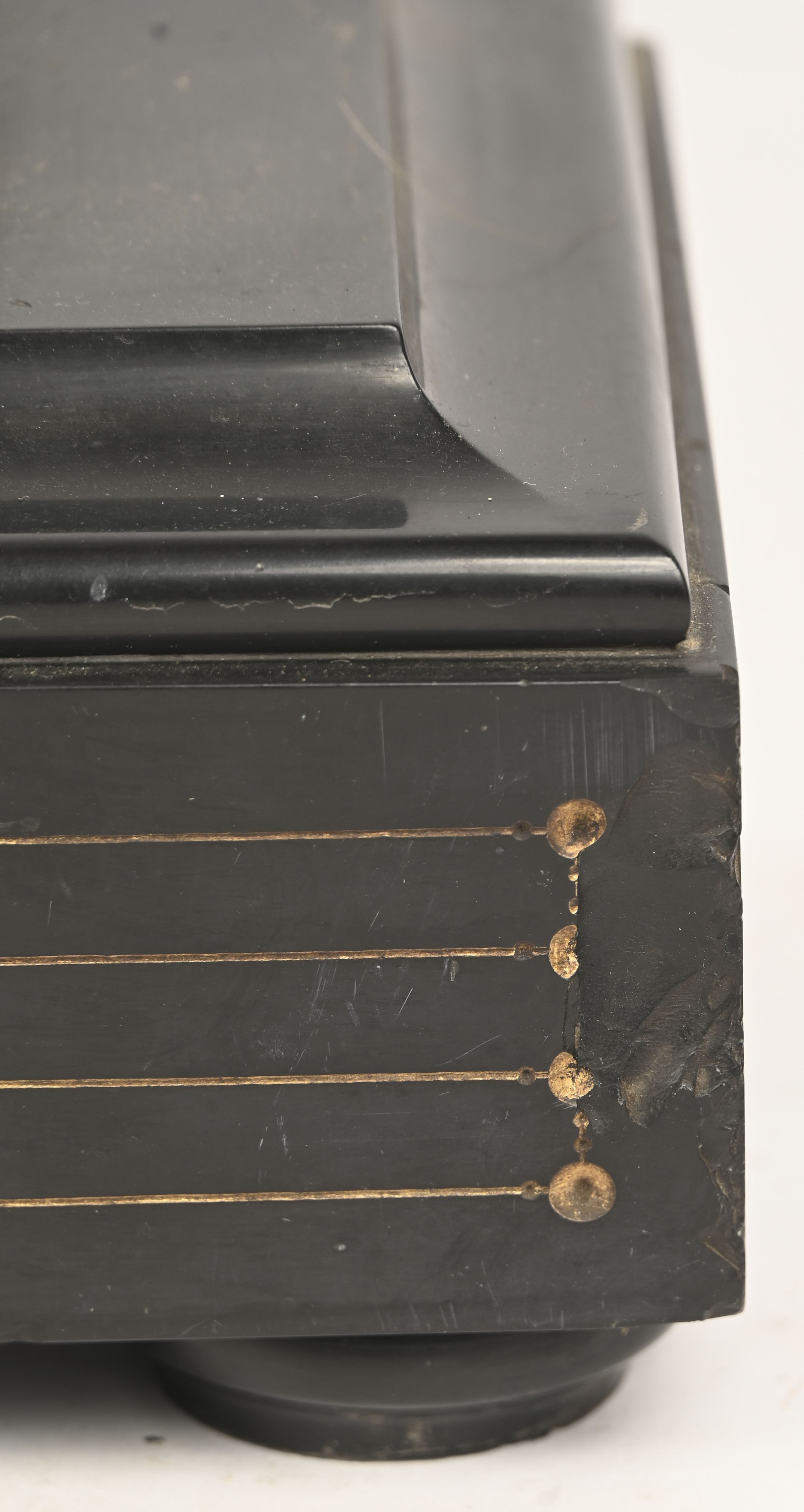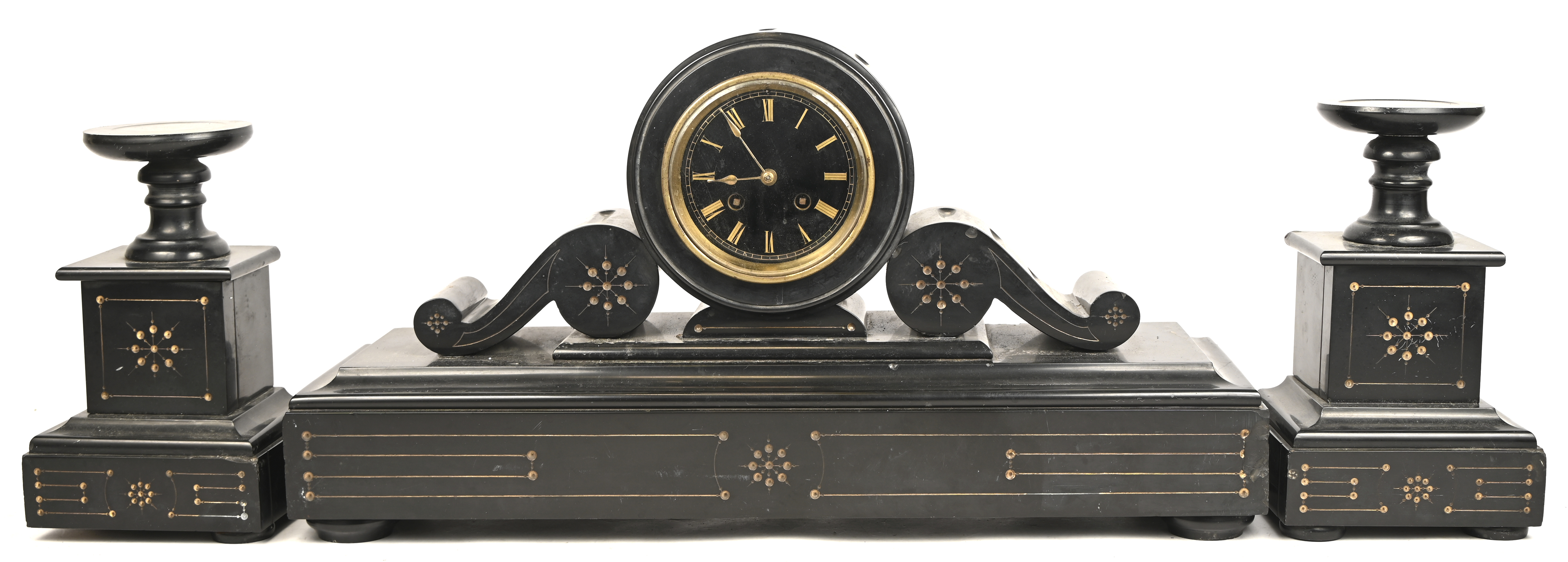 #157Parrot FrèresEen grote 19e eeuwse Boulle pendule gedragen door 4 vergulde paarden met bovenaan een gezeten Athena. Gemerkt op het mechanisme ‘Parrot Frères, Medaille de Bronze 1878. De koperen marquetterie is op meerdere plaatsen gelost en het glas manco.