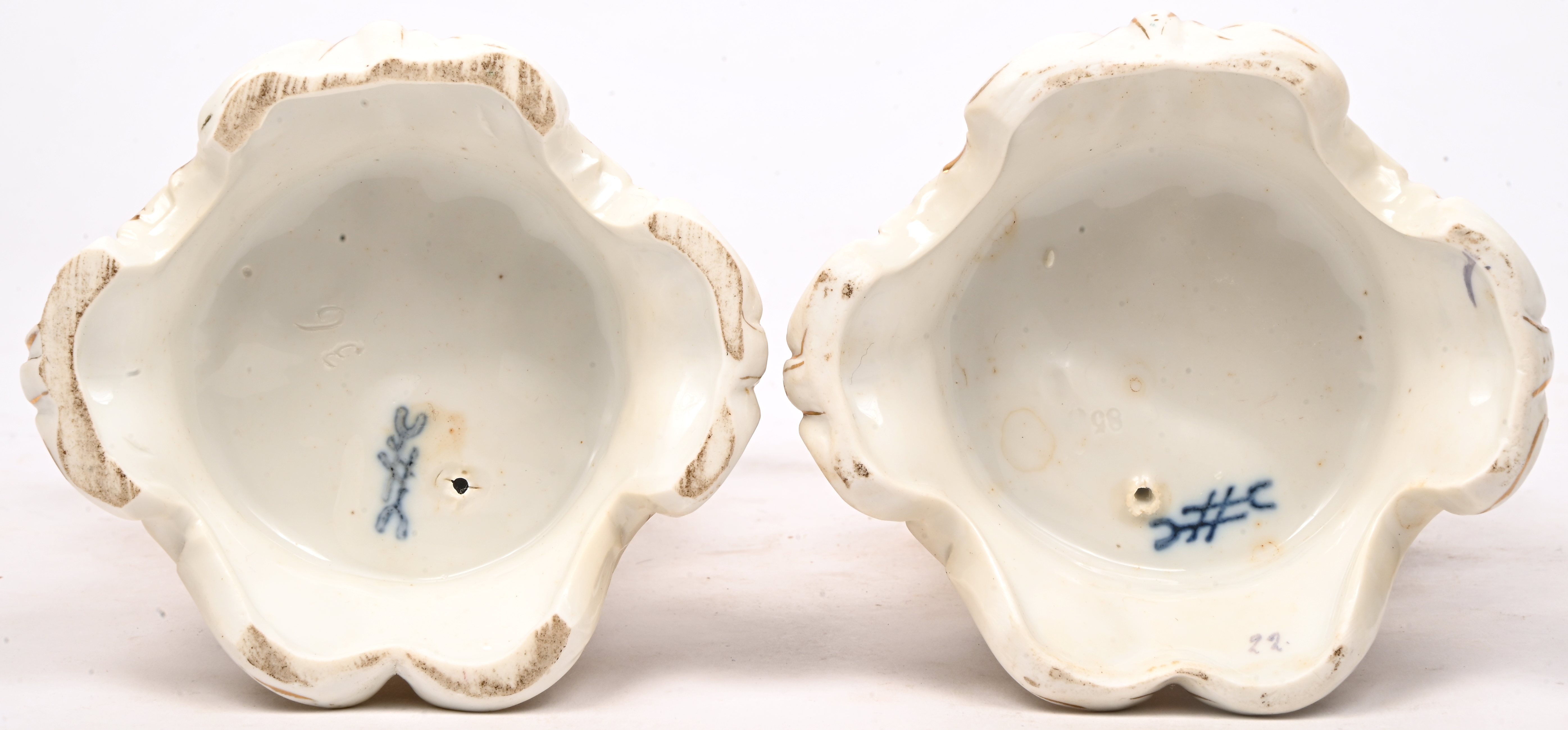 “Hert aangevallen door jachthonden”. Fijn porseleinen groepje. Onderaan gemerkt. Omstreeks 1900. Diverse kleine letsels.