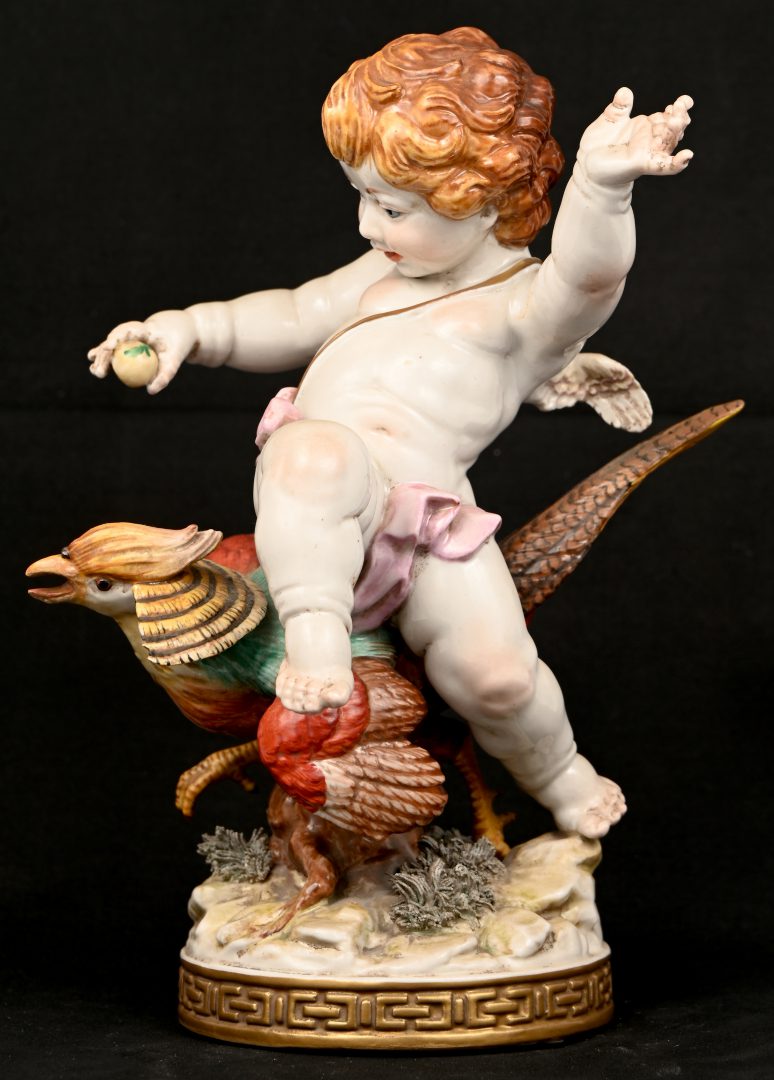 #7Karl EnsKind met kuiken’, een beeldje van meerkleurig porselein. Gemerkt ENS, Diaphan porzellan.