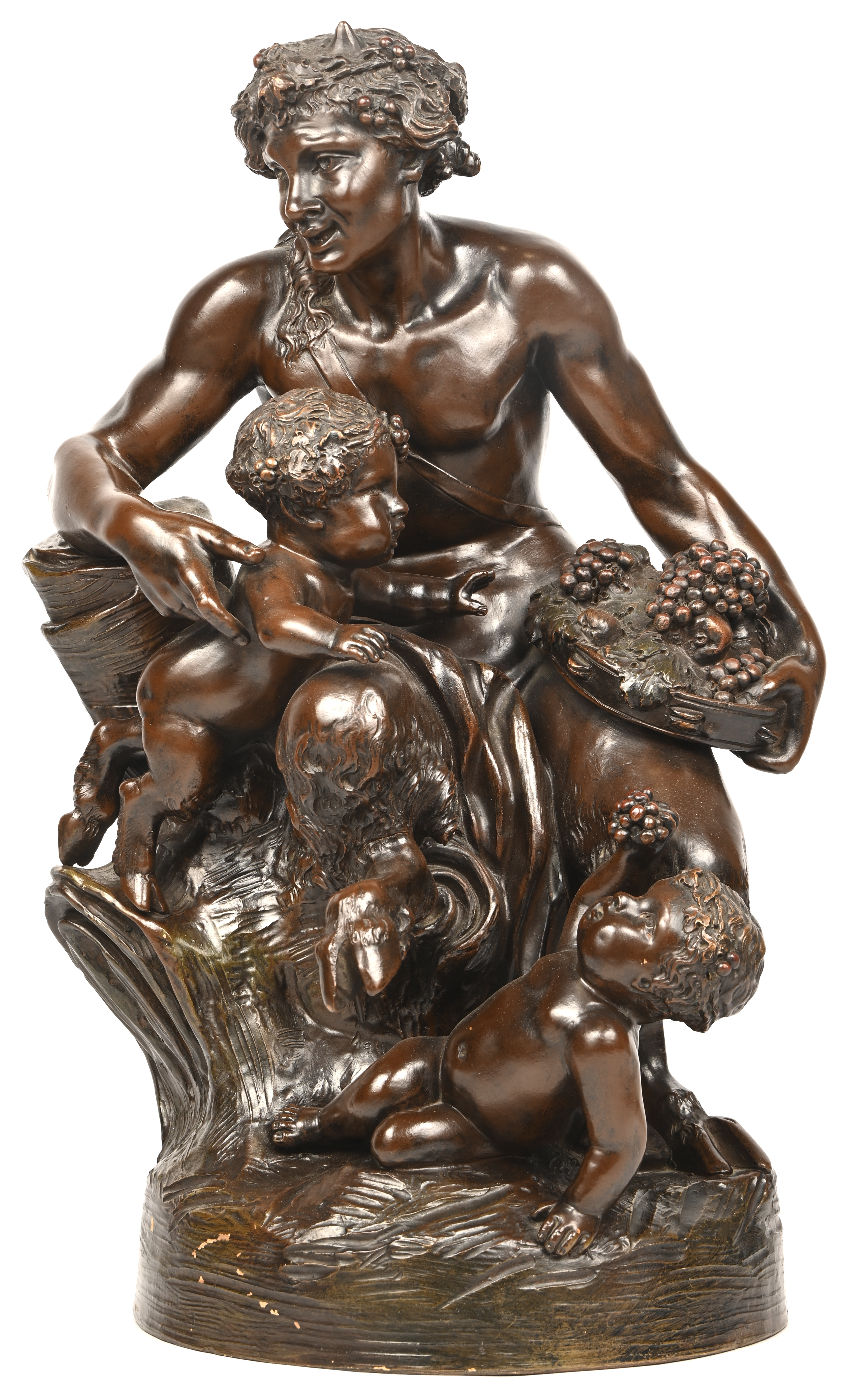 #491“Jongen met fruitmand”, een betonnen tuinbeeld.