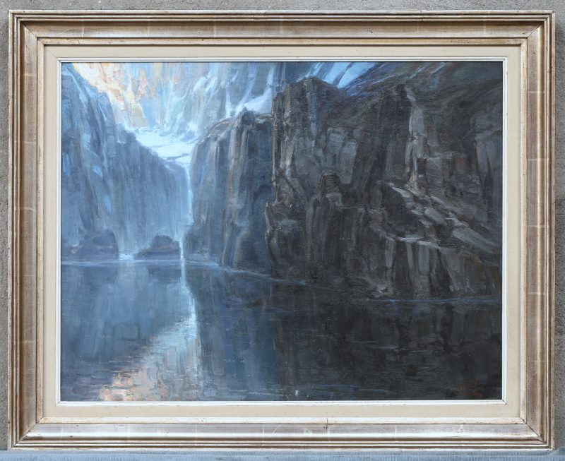 #102Jean Jacques FoulonPeriod: 1923-1980Marine, olie op doek. Getekend J J Foulon. Hij werd geboren in 1923 in Kraainem en overleed in 1980 in Brussel. J.J. Foulon genoot zijn opleiding aan de Academie voor Schone Kunsten in Brussel en was leerling van Alfred Delaunois aan de Academie van Leuven.