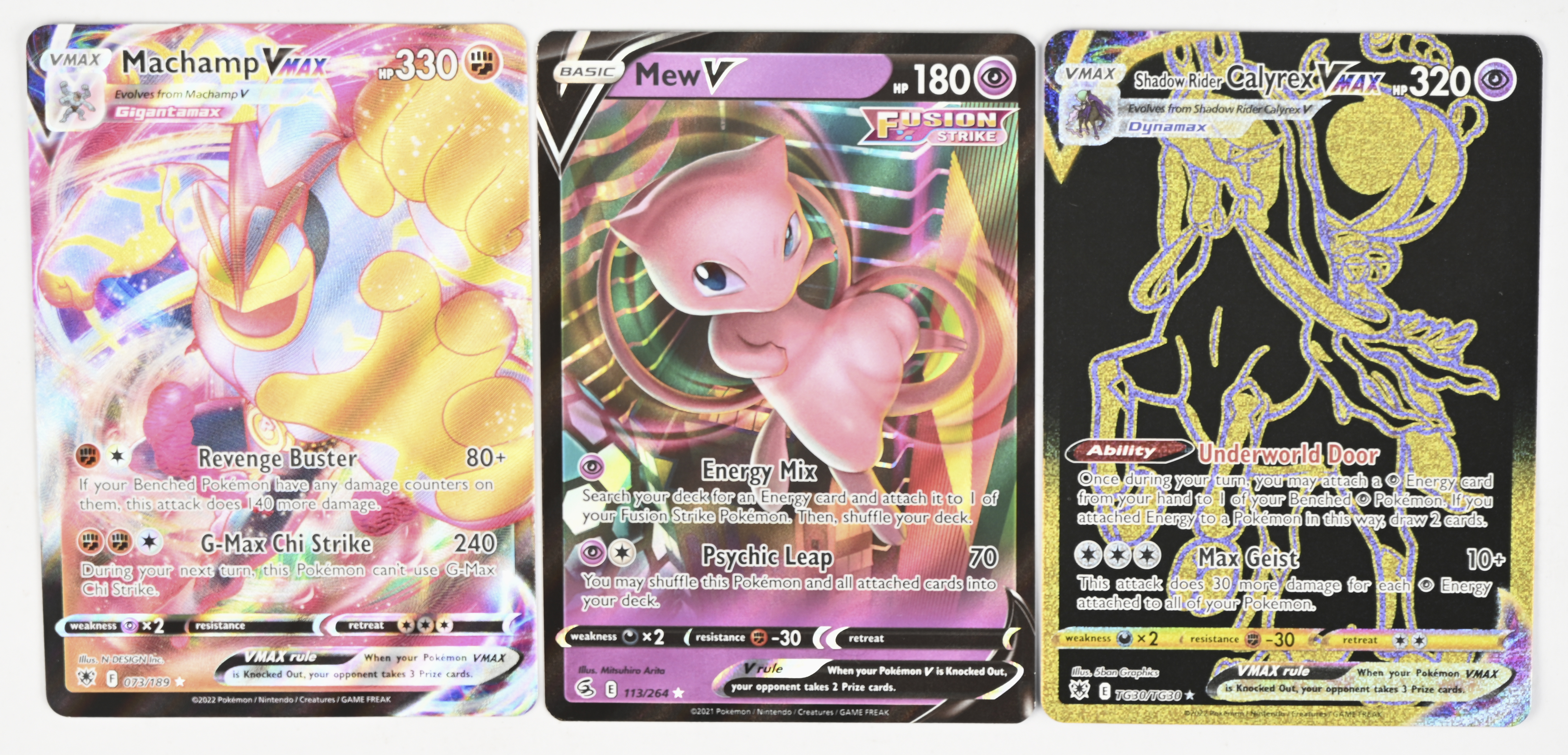 Fusion Strike Mew V 113/264 Ultra Rare Holofoil 2.92 Astral Radiance Trainer Gallery Shadow Rider Calyrex VMAX (Secret) TG30/TG30 Ultra Rare Holofoil 3.43 Astral Radiance Machamp VMAX 073/189 Ultra Rare Holofoil 4.56