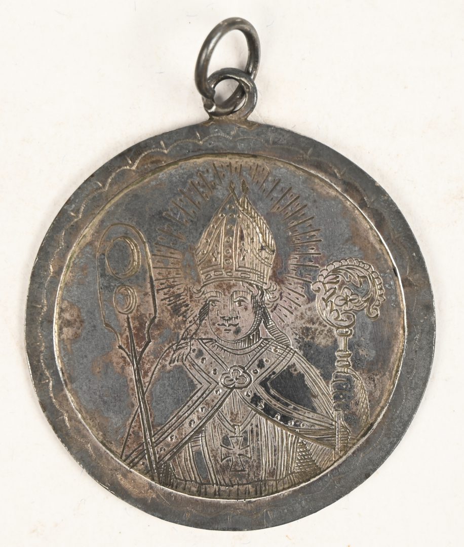 A silver set consisting of 3 brushes, a shoe horn, and the silver part of a comb. All 5 parts bear the Delheid hallmark. Added 2 brushes with silver-plated holder. -