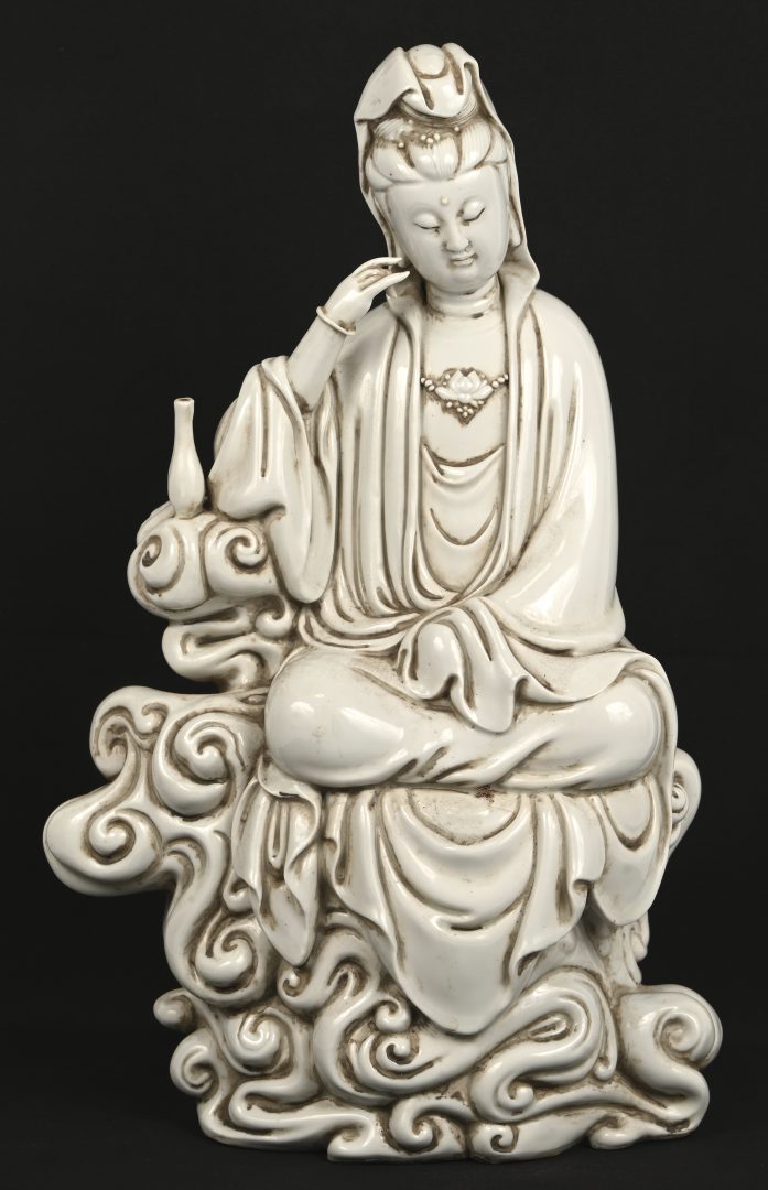 A pair of lidded jars made of Blanc de Chine earthenware. -