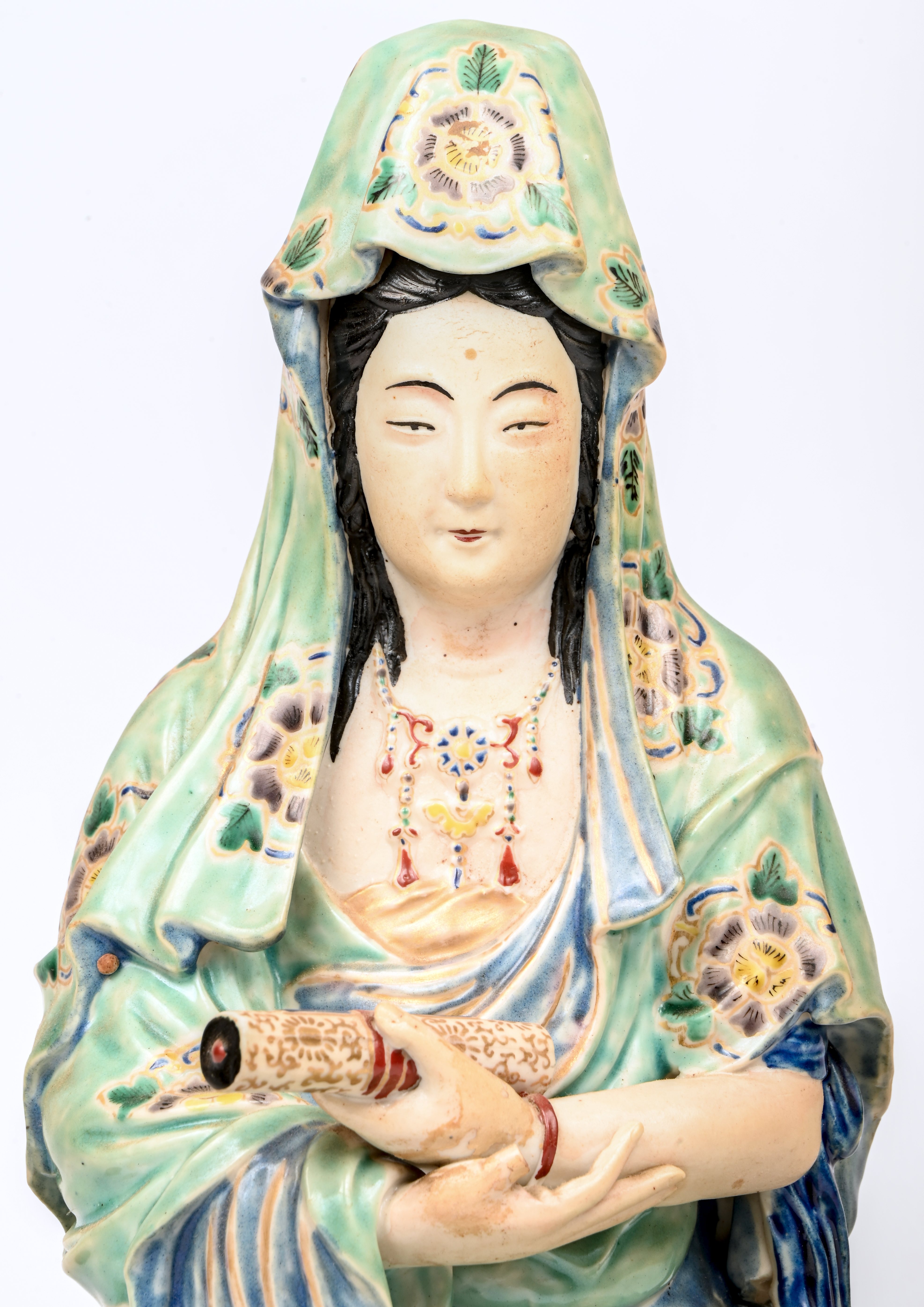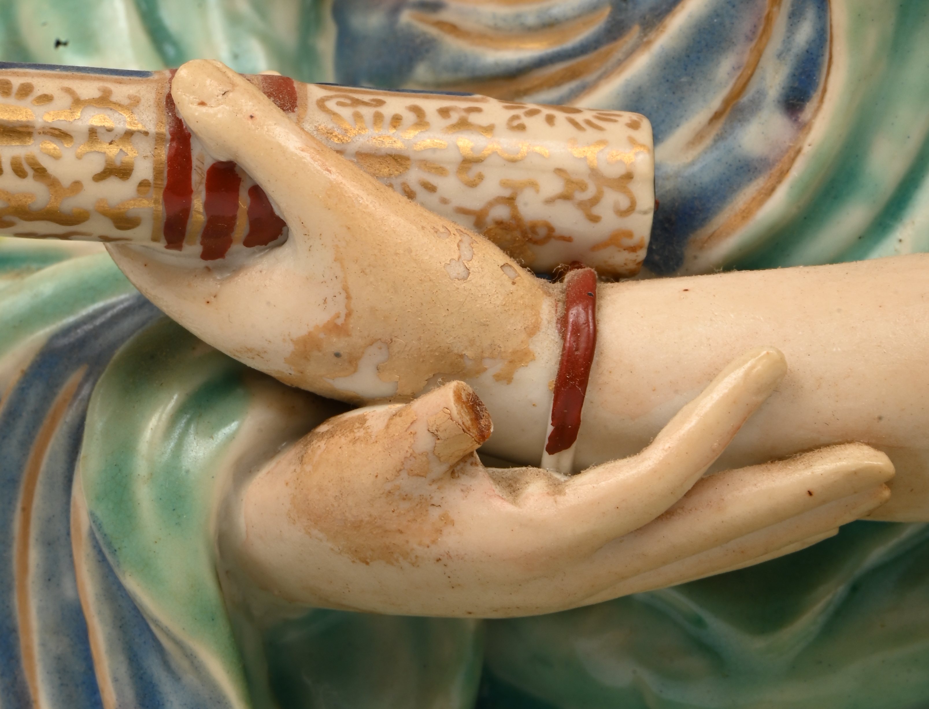 "Madonna and Child" and "Saint Joseph." Two figurines in polychrome biscuit and porcelain. Possibly Brussels, early 20th century.