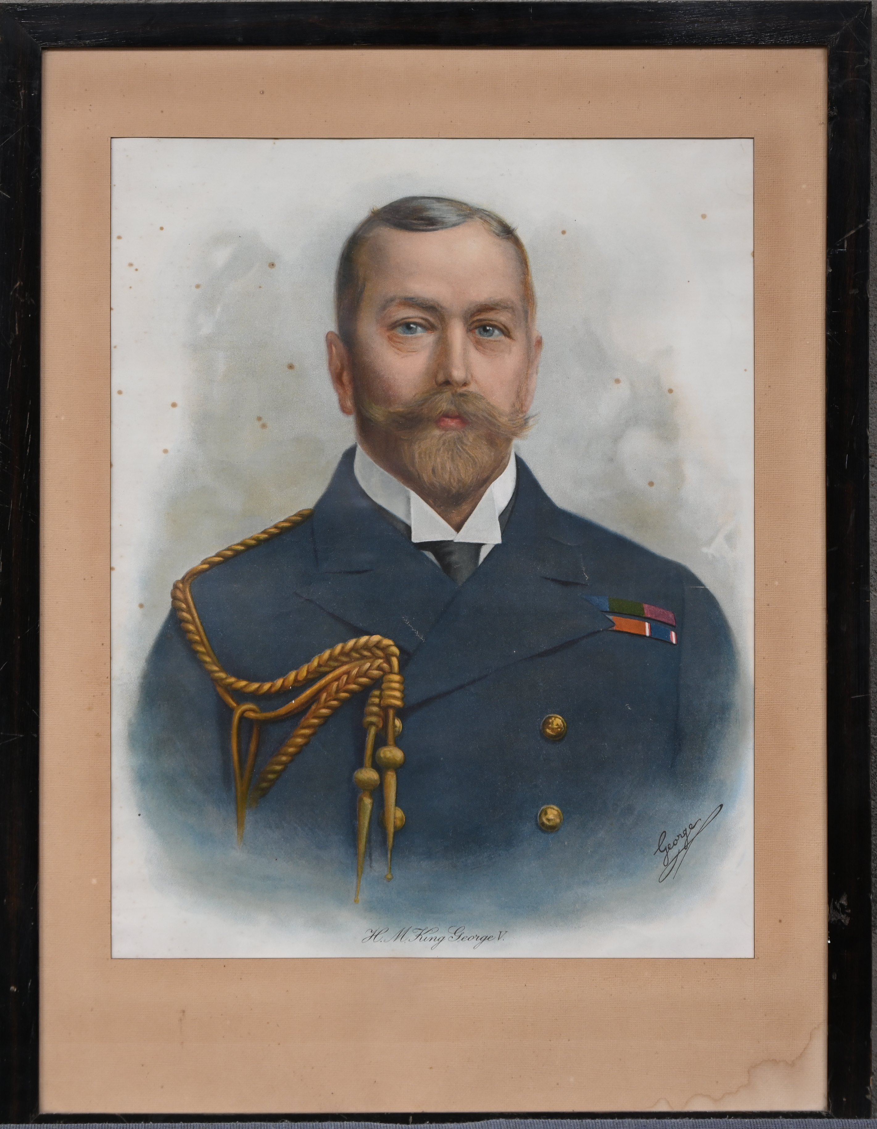 'H. M. King George V', a color lithograph of a British monarch in naval uniform.