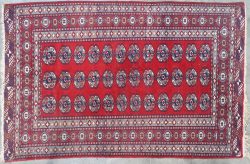 A hand-knotted wool Pakistani carpet. -