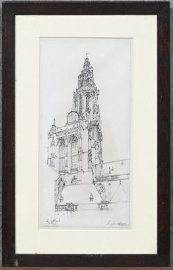 "The Cathedral, Antwerp". Pencil drawing. Titled and signed. Featured in various exhibitions and from the artist's family collection. -