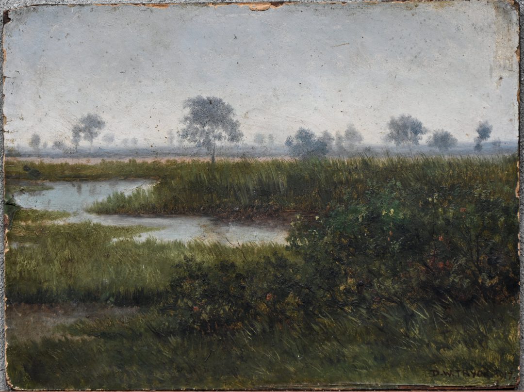 ‘Heidelandschap’, olieverf op paneel. Getekend D. W. Tryon, 1917.