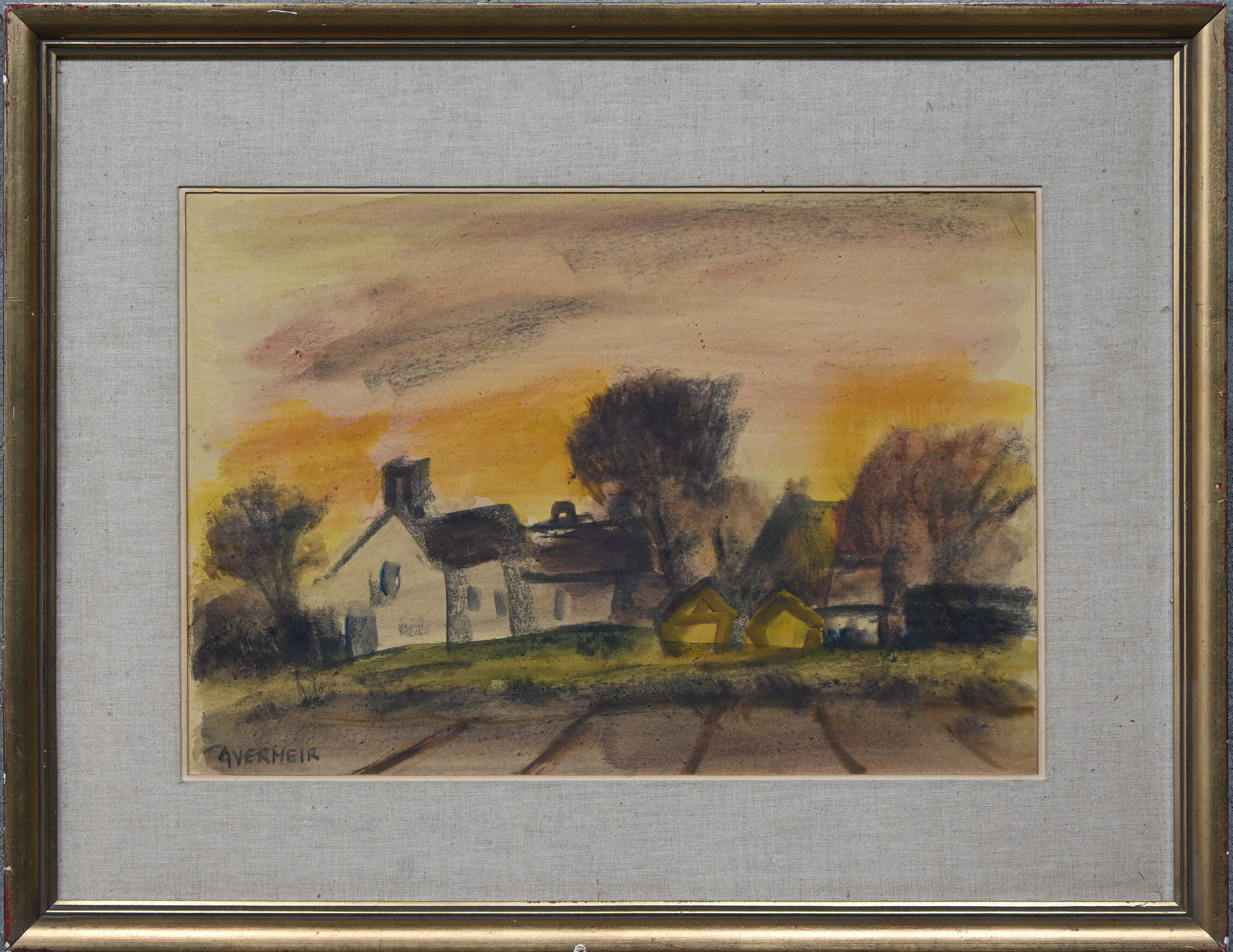 ‘Herfstlandschap met hoeve’, olieverf op paneel. Getekend A. Vermeir.