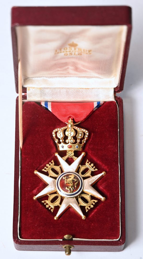 Het 18kt geelgouden kruis van de Orde van Sint Olaf, Noorwegen. Met bijhorend etui. Bruto: 21,60 gr.