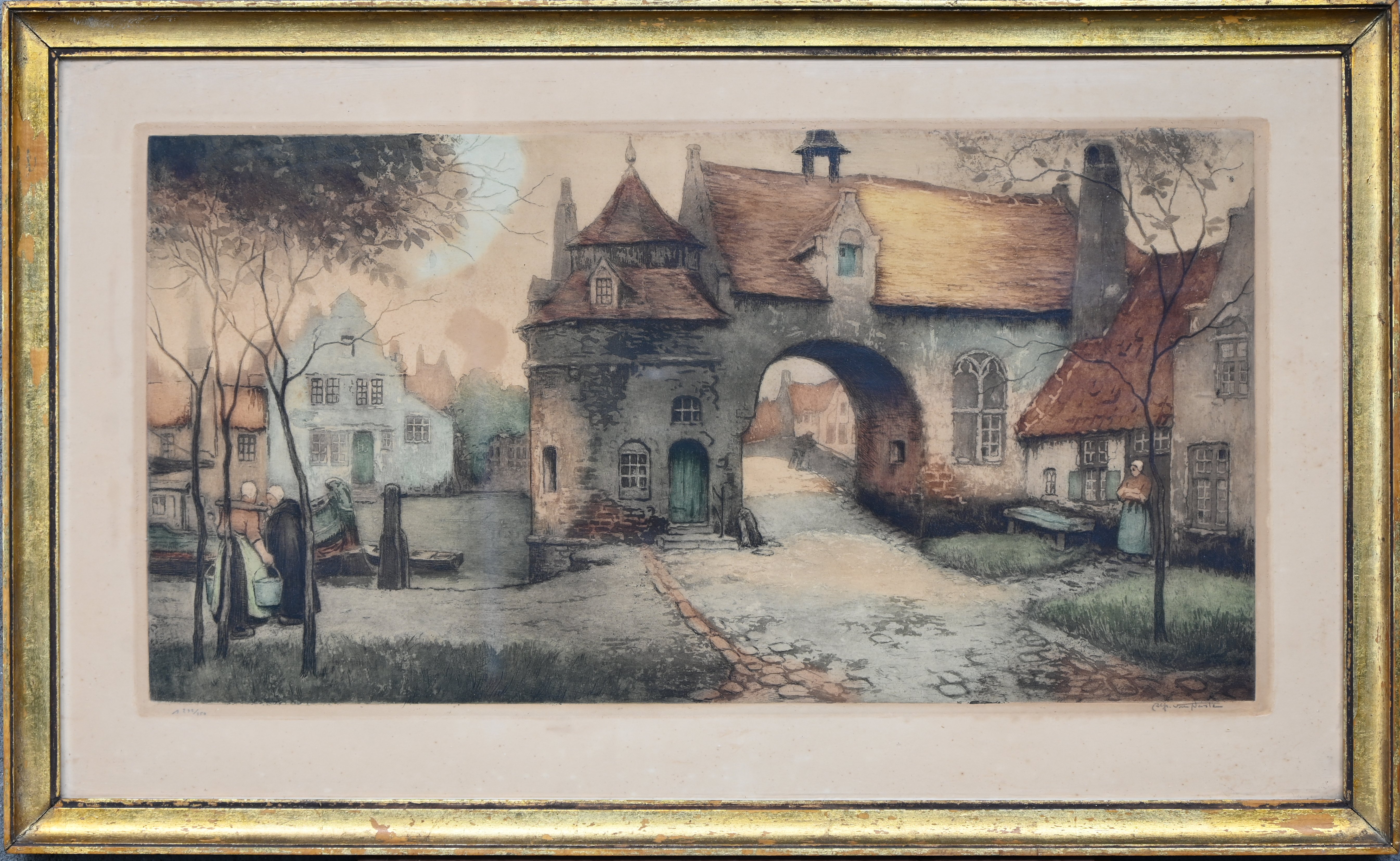 Bruges. Color etching by Alfred van Neste. -