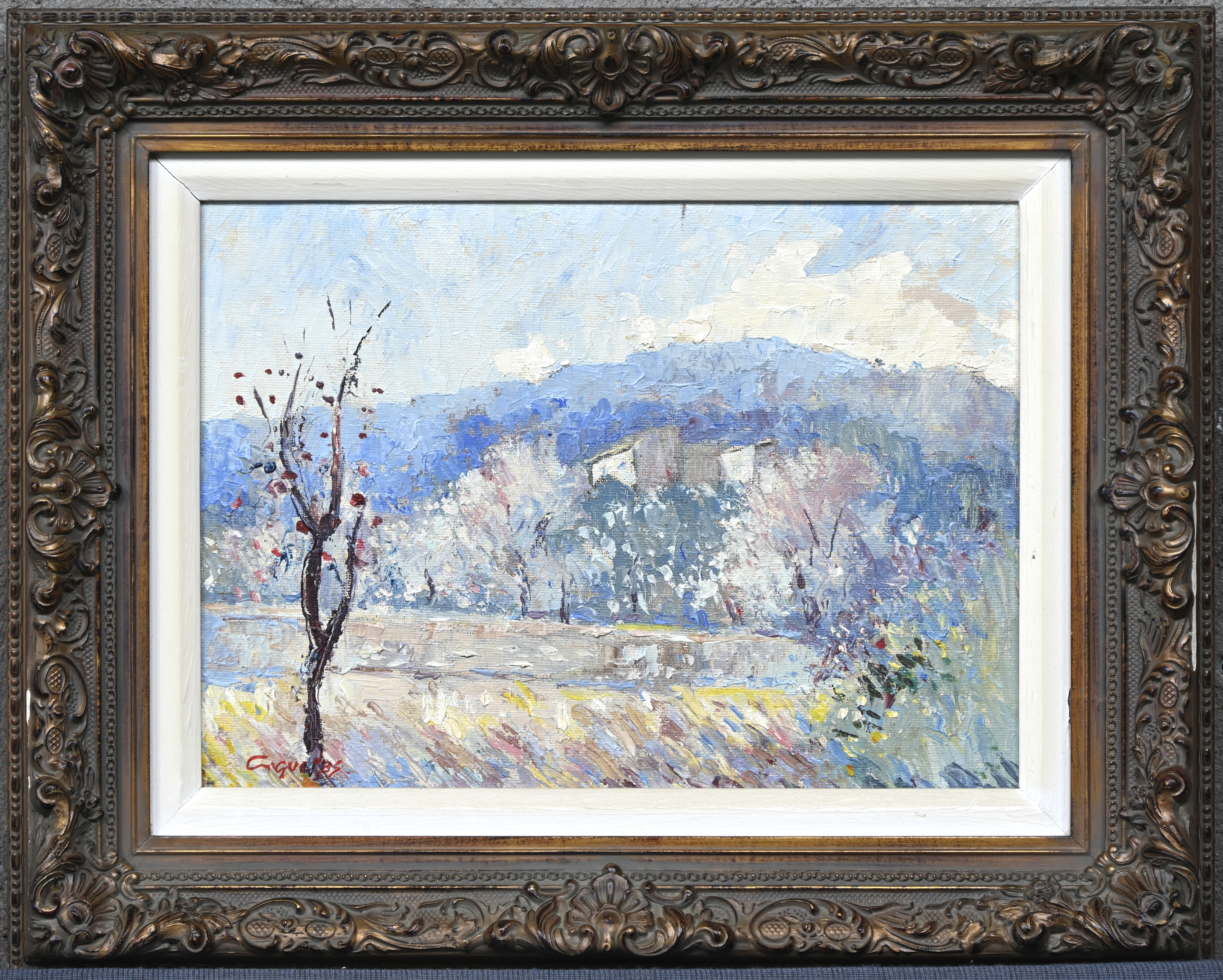"Farm view". A painting, oil on canvas. Signed at the bottom. -