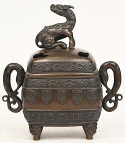 #423Een grote rijkelijk gedecoreerde Chinees bronzen wierrookbrander.