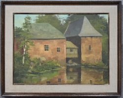 #582‘De watermolen van Grobbendonck’, olieverf op doek. Getekend Broers.