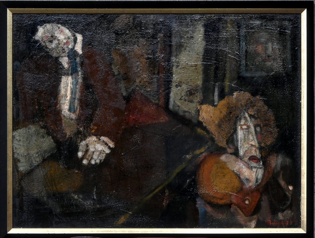 ‘In het bordeel’, olieverf op paneel. Getekend Buyck.