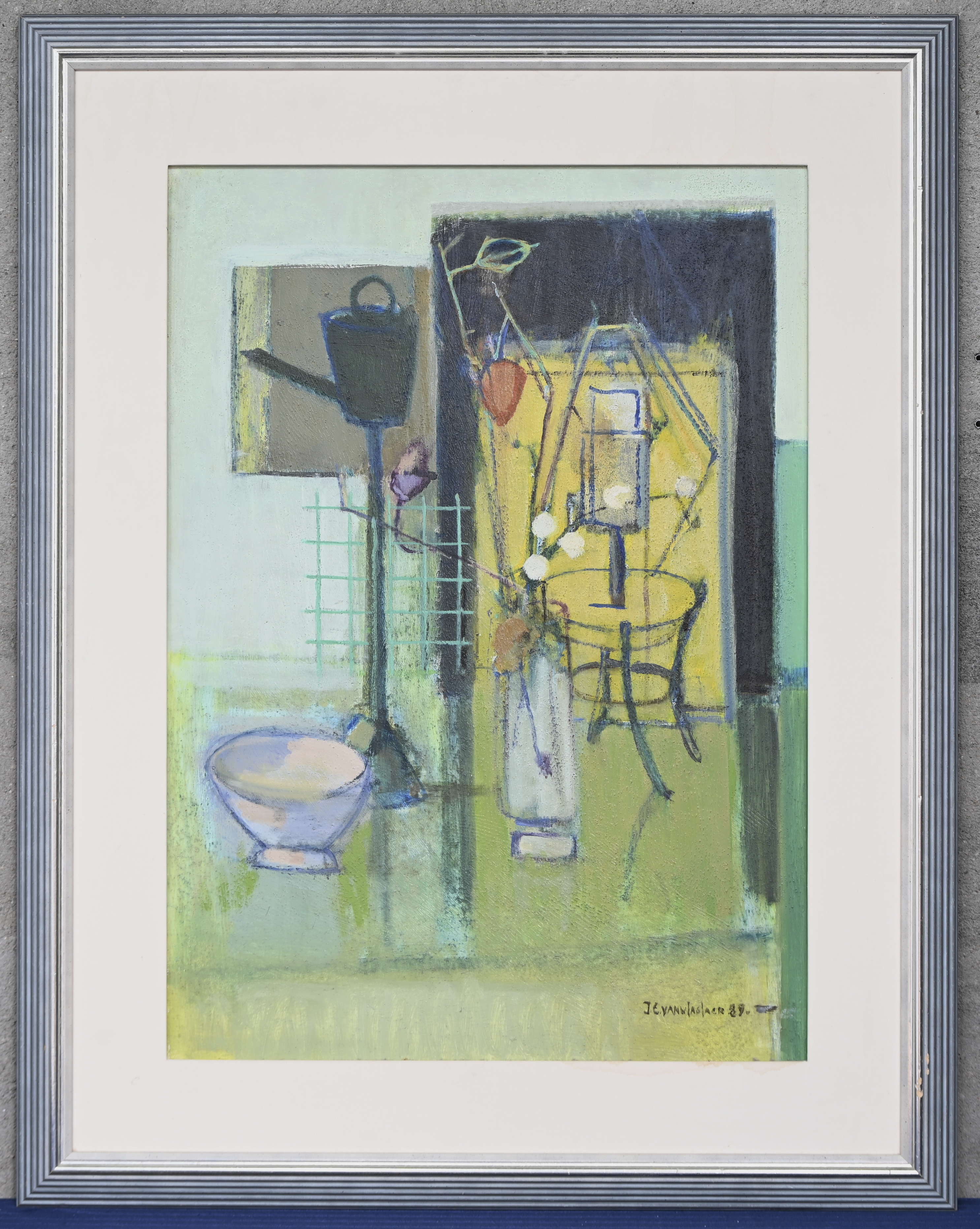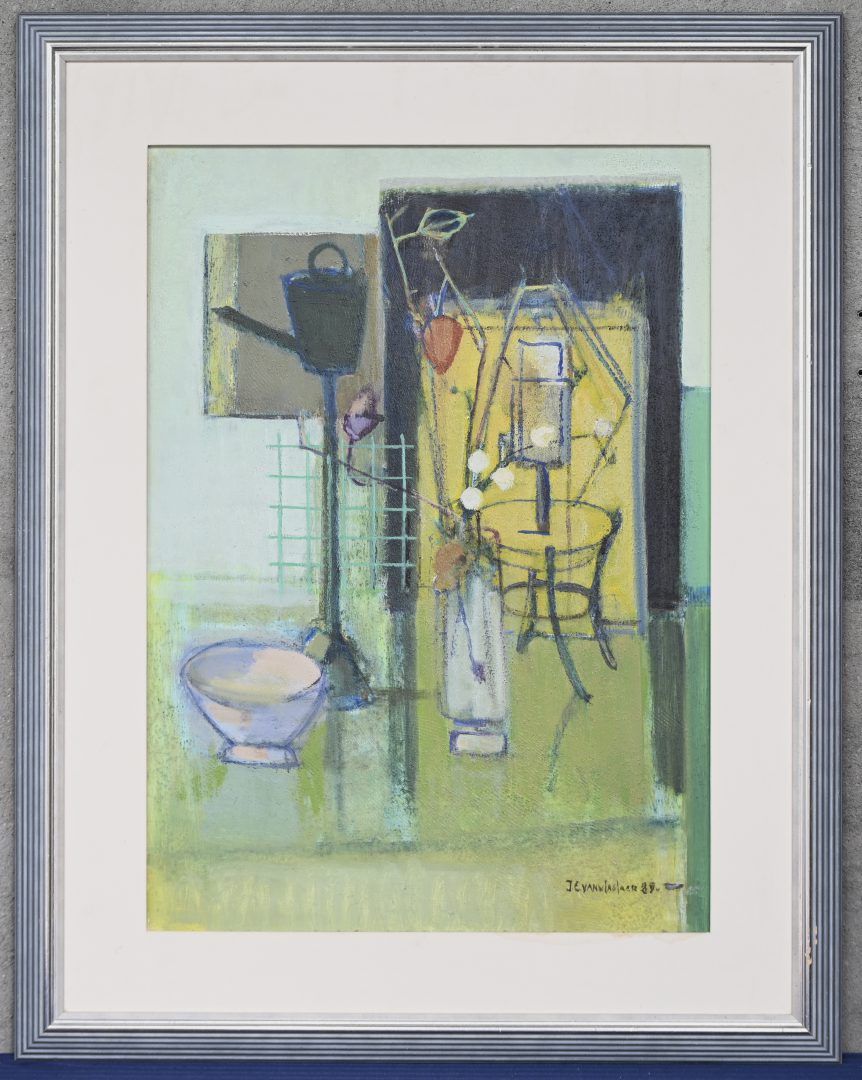 #84Charles ManginPeriod: Antwerpen 1892-1977“Stilleven met kan en ajuinen”, een schilderij, olieverf op doek, gesigneerd.