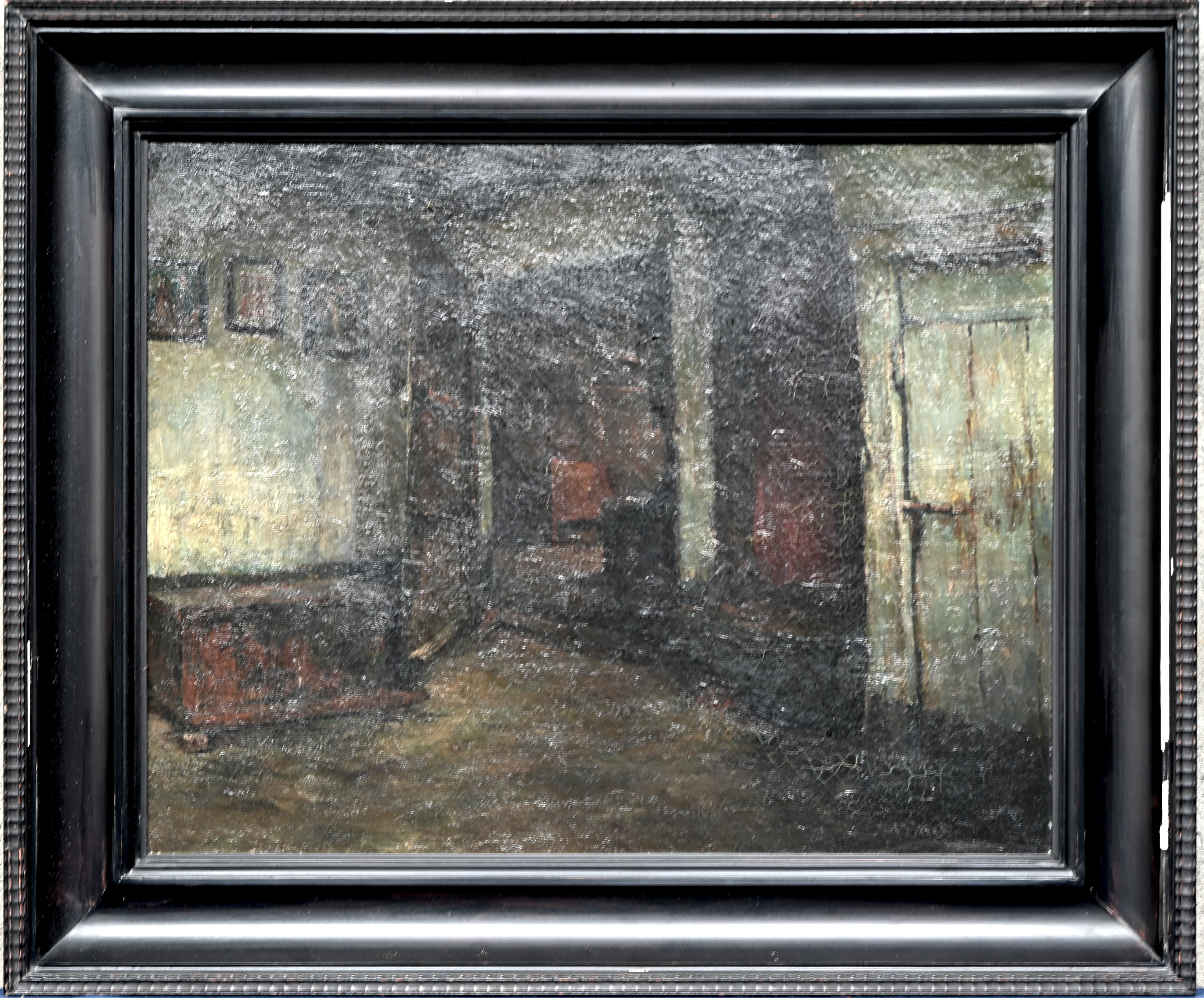 #234‘Bouwvallig schuurtje’, een studie in olieverf op paneel. Onleesbaar getekend.