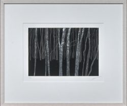 'Silver Birches', simplified image of a group of trees. Signed illegibly. -