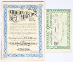 A bundle of old stocks from Minerva Motors and the N.M.B.S. -