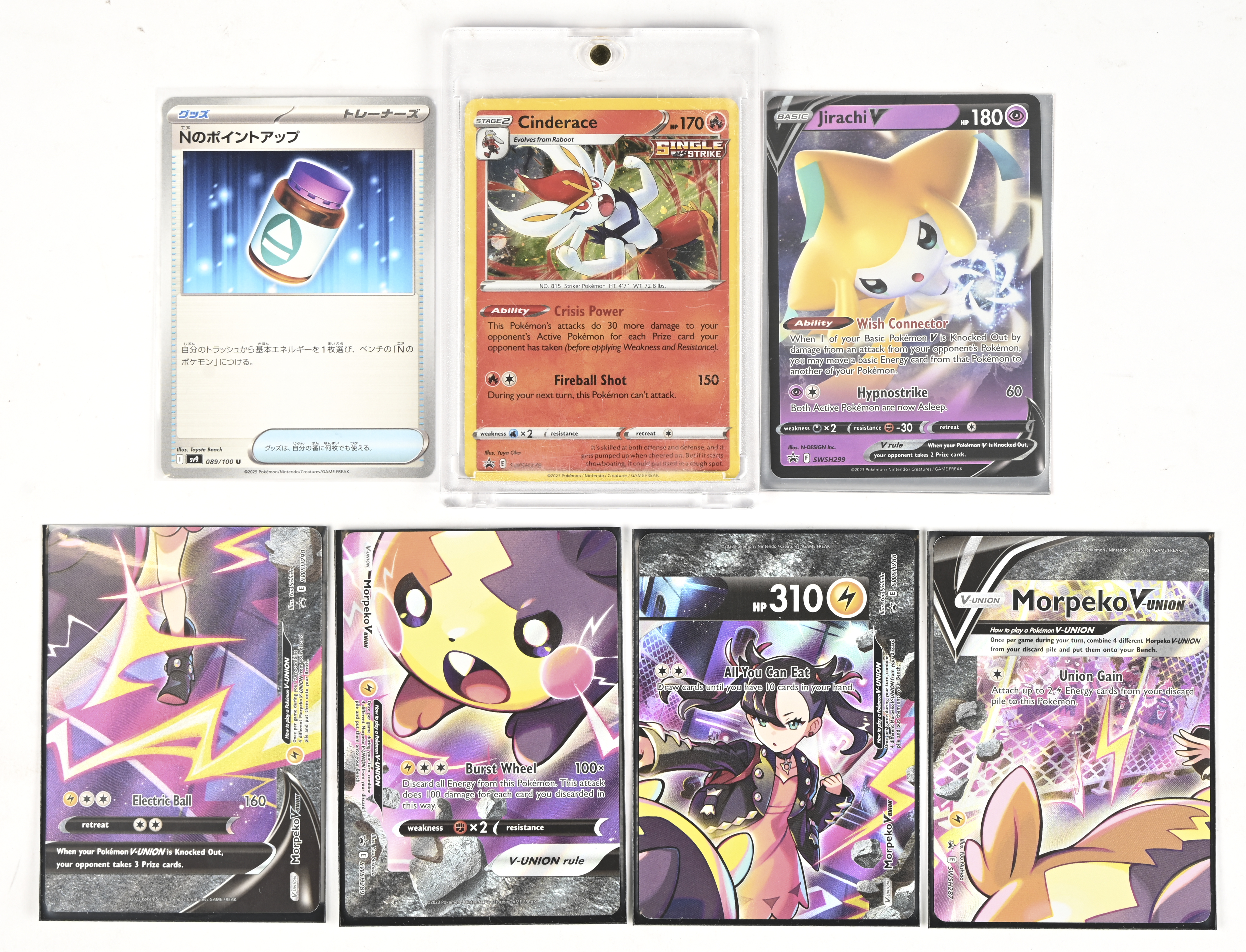 Jirachi V [Promo; Holofoil] — Sword & Shield Promo — €2.50Morpeko V (SWSH287) (Set of 4) [Promo; Holofoil] — Sword & Shield Promo — €1.92Cinderace [Promo; Holofoil] — Sword & Shield Promo — €0.31N's PP Up (JP) [Uncommon; Normal] — Battle Partners — €1.47