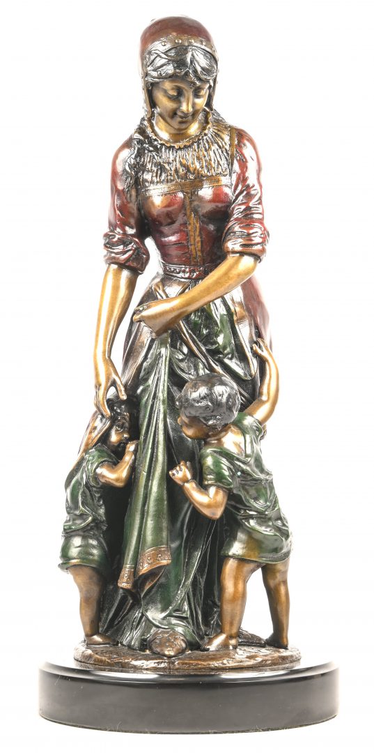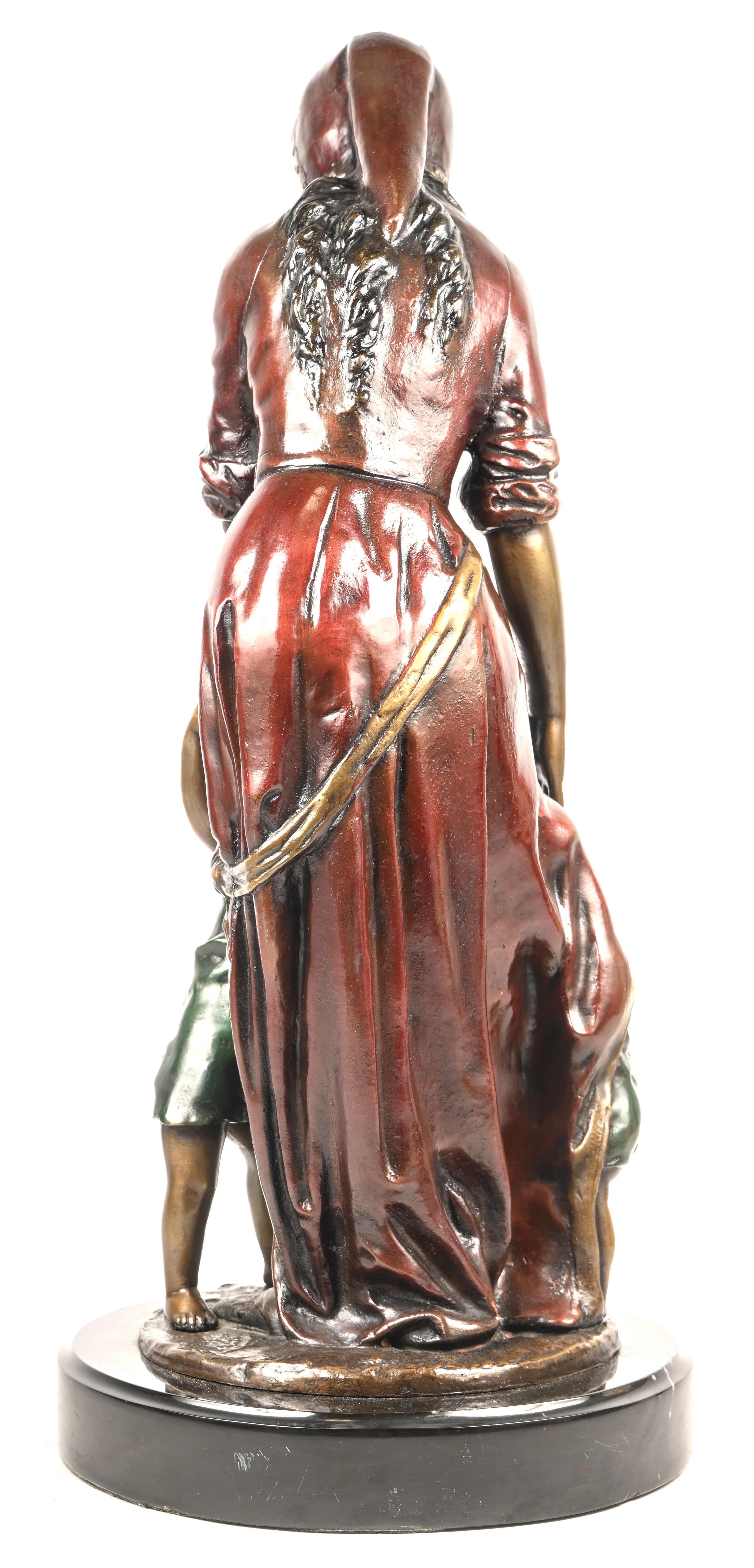 "Mother with child." A terracotta sculpted statue. Signed at the bottom. Presumed numbering is "8/12". -