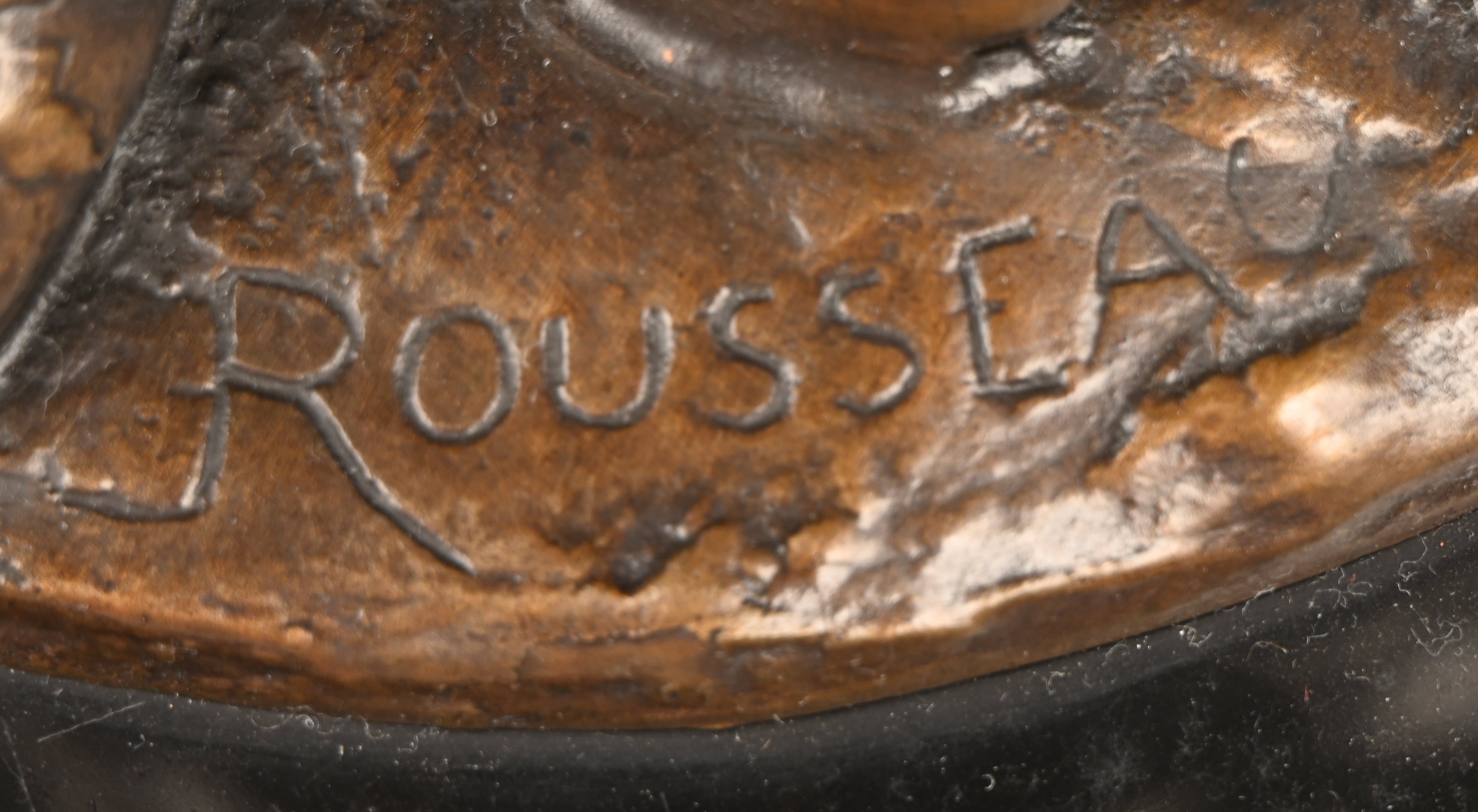 "Noble lady with feathered hat", a bust in patinated bronze. Signed R. Gregoire. -