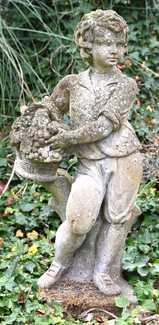 “Jongen op een frisse ochtend”, een betonnen tuinbeeld.