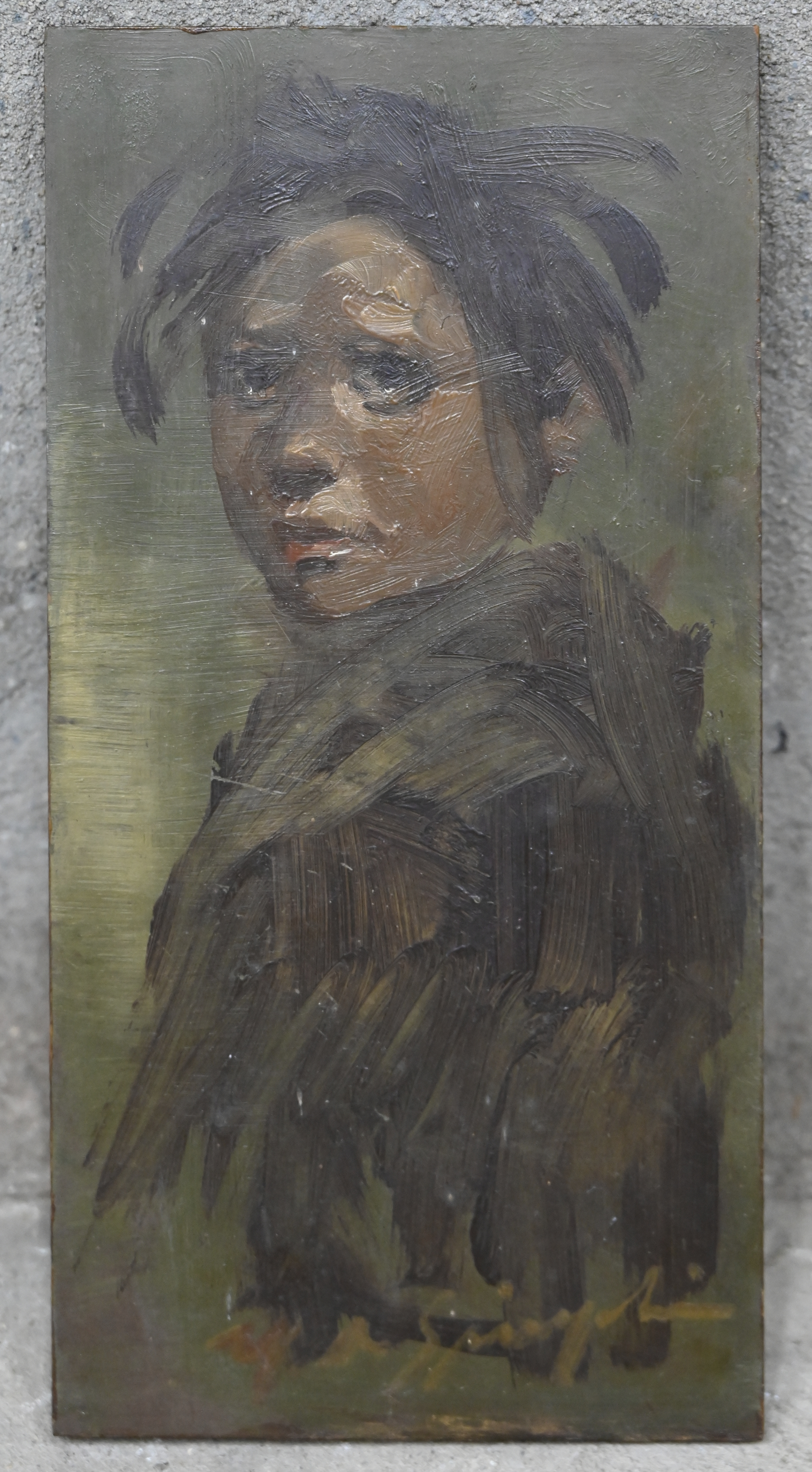 ‘Kinderportret ten halven lijve’, olieverf op paneel. Getekend M. De Spiegeleir.