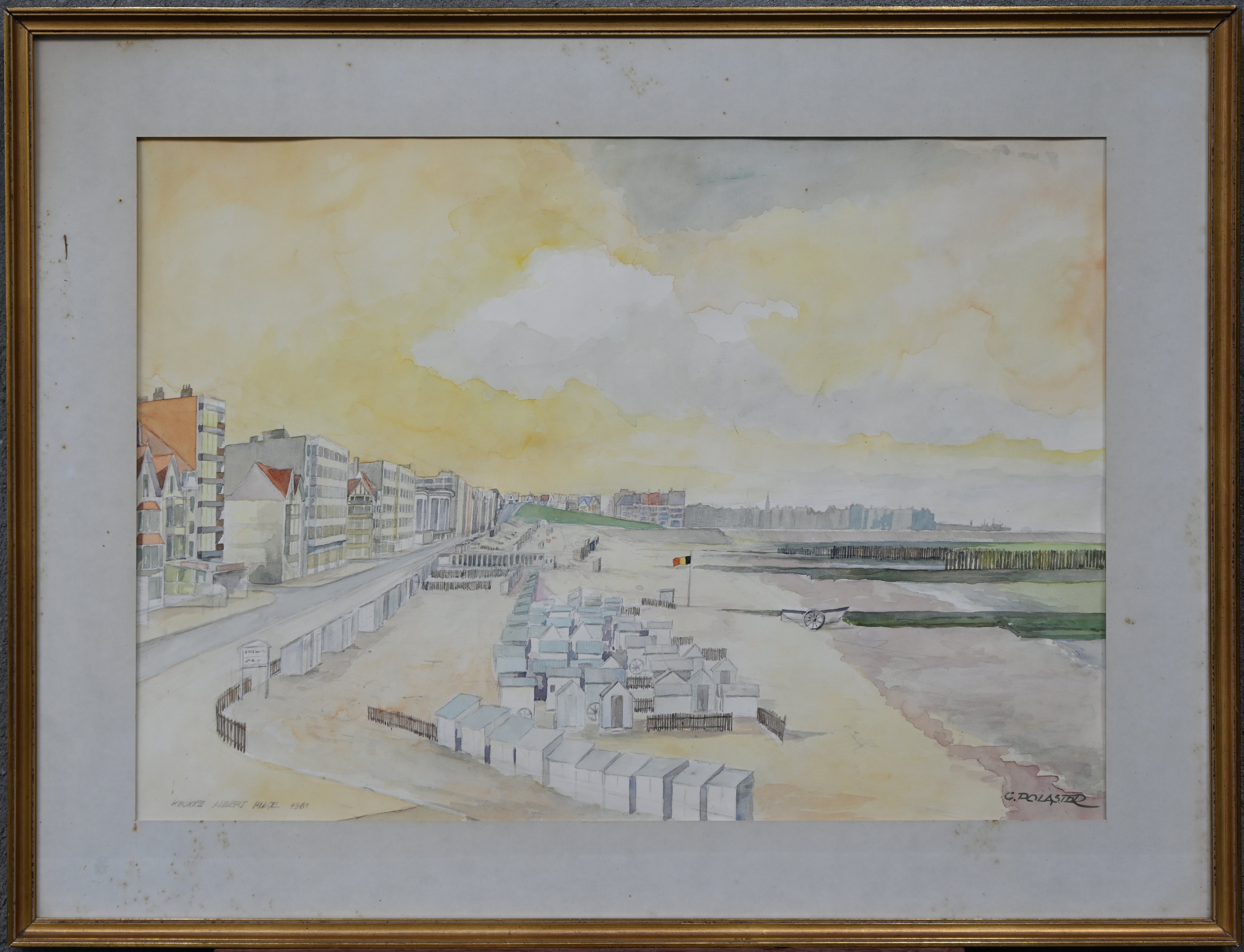 'The Scheldt at Doel”, monoprint. Signed outside the plate; A. Goezu, '64. Damage to the frame. -