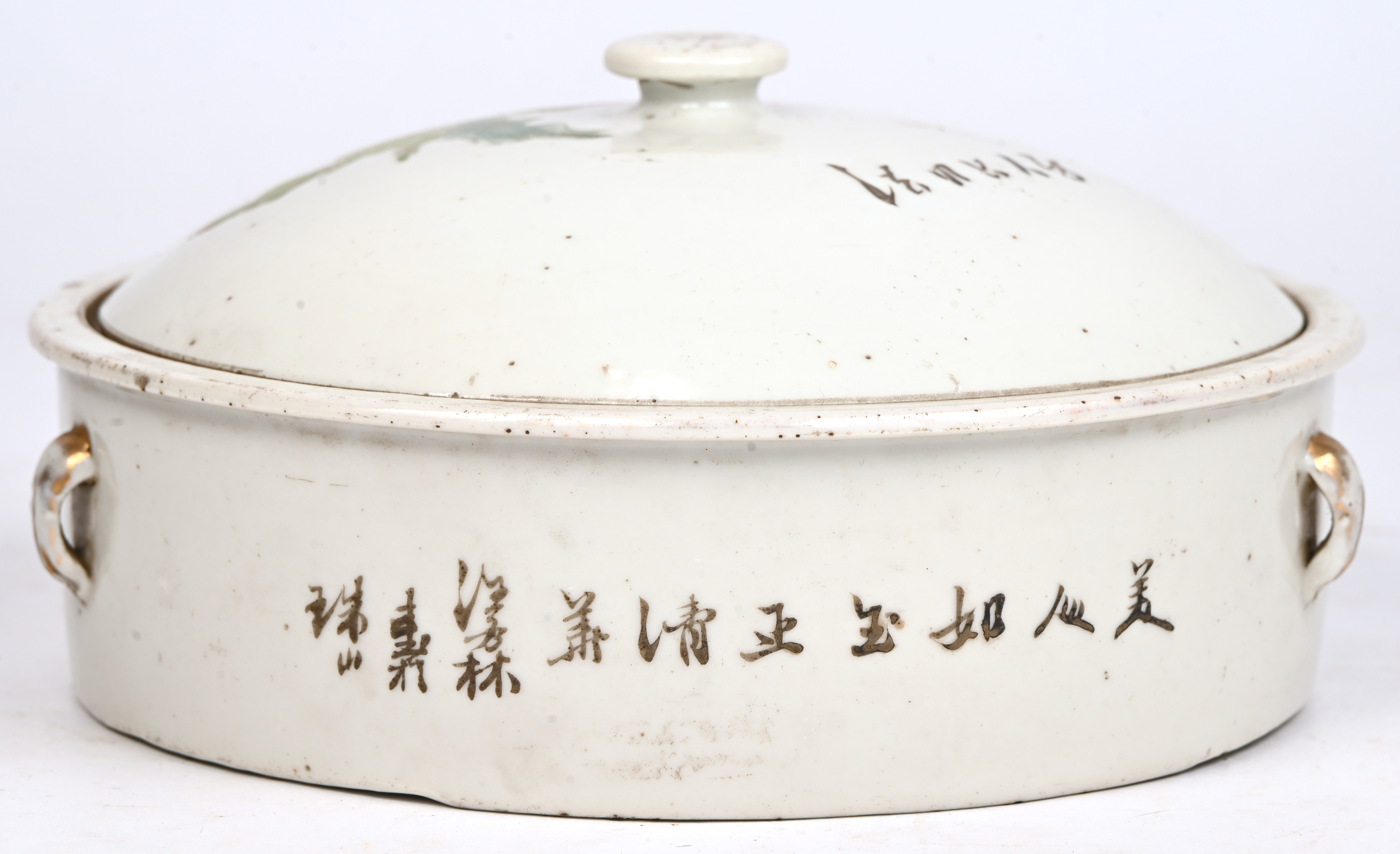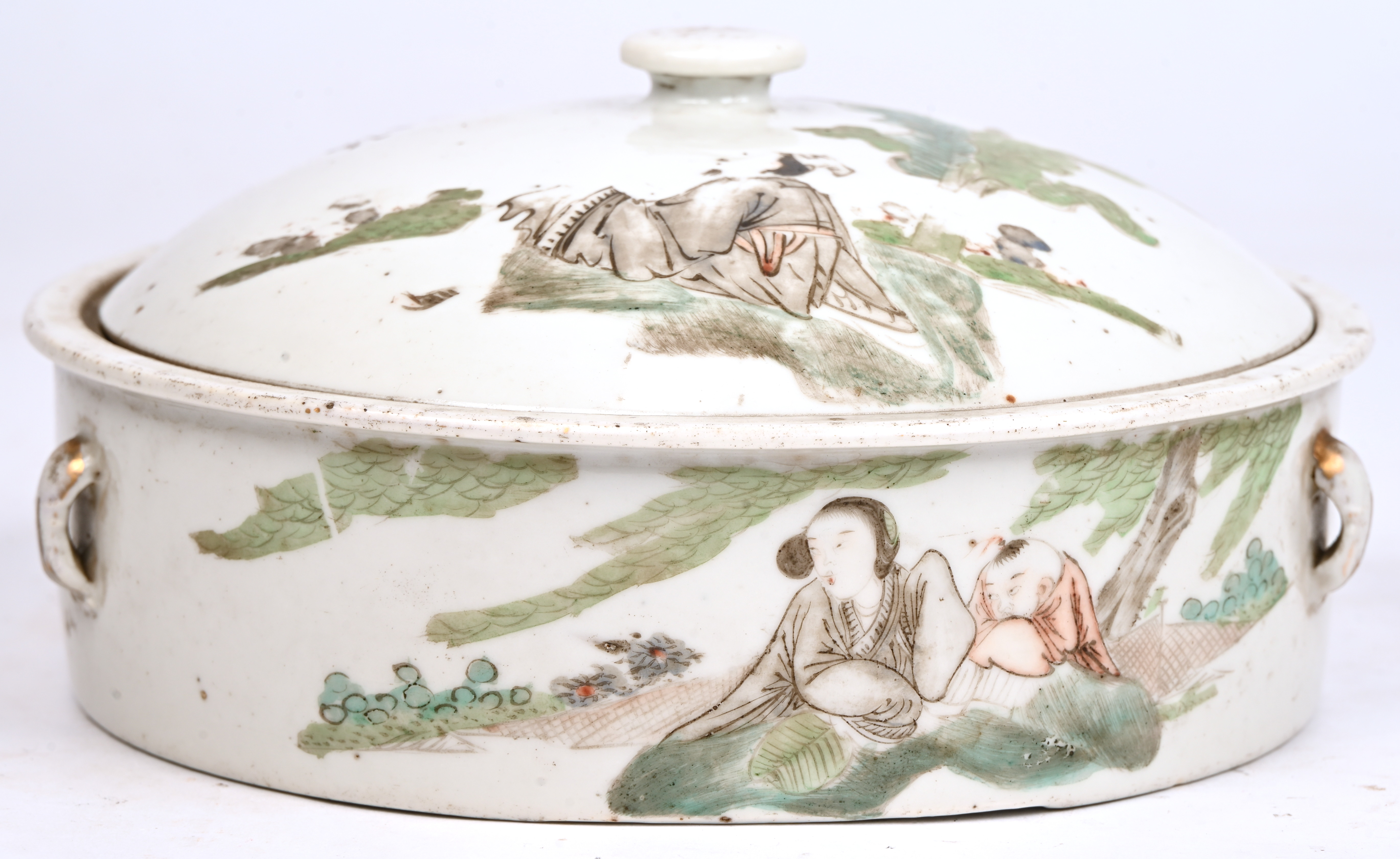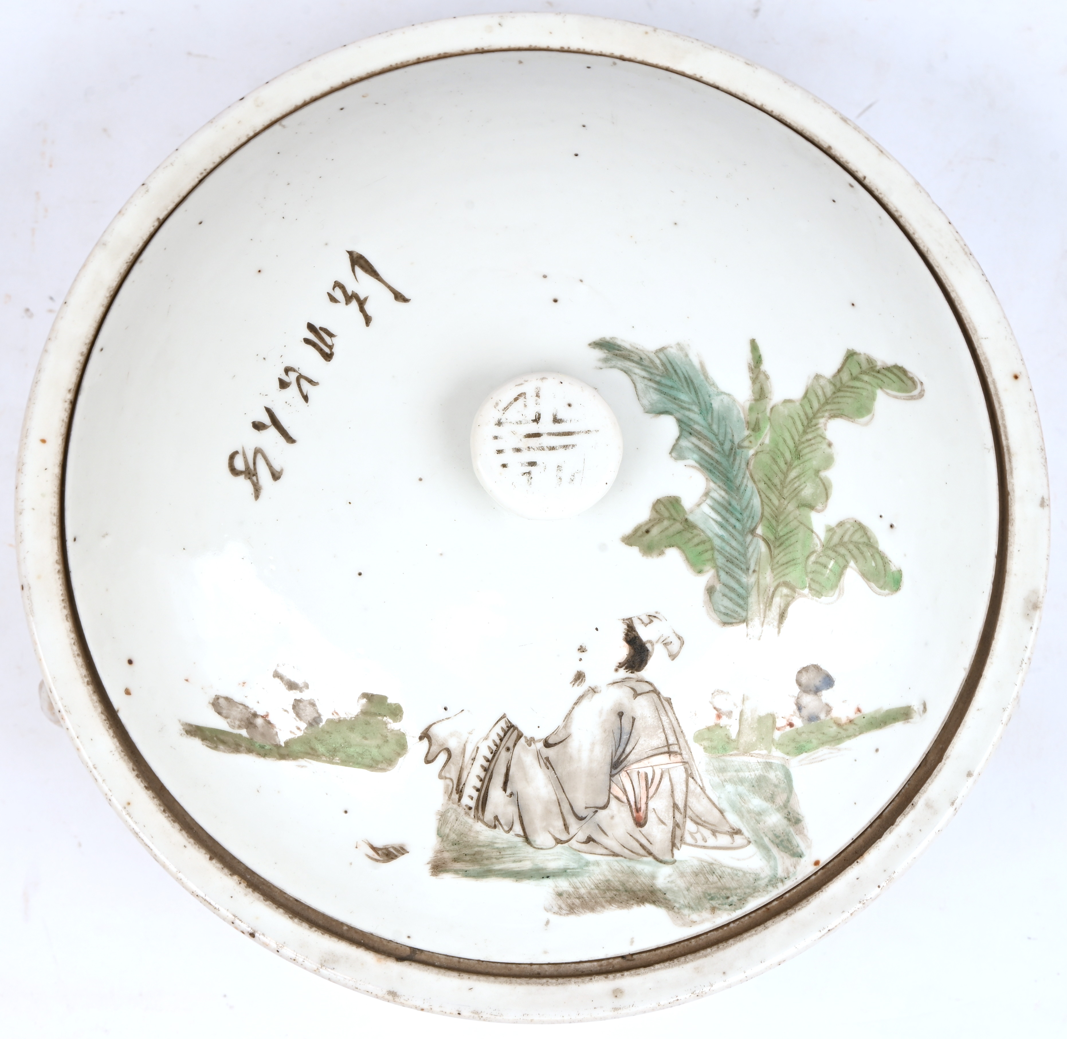 A lot of 4 Chinese porcelain bowls with lids including one incense burner, 19th/20th century. -