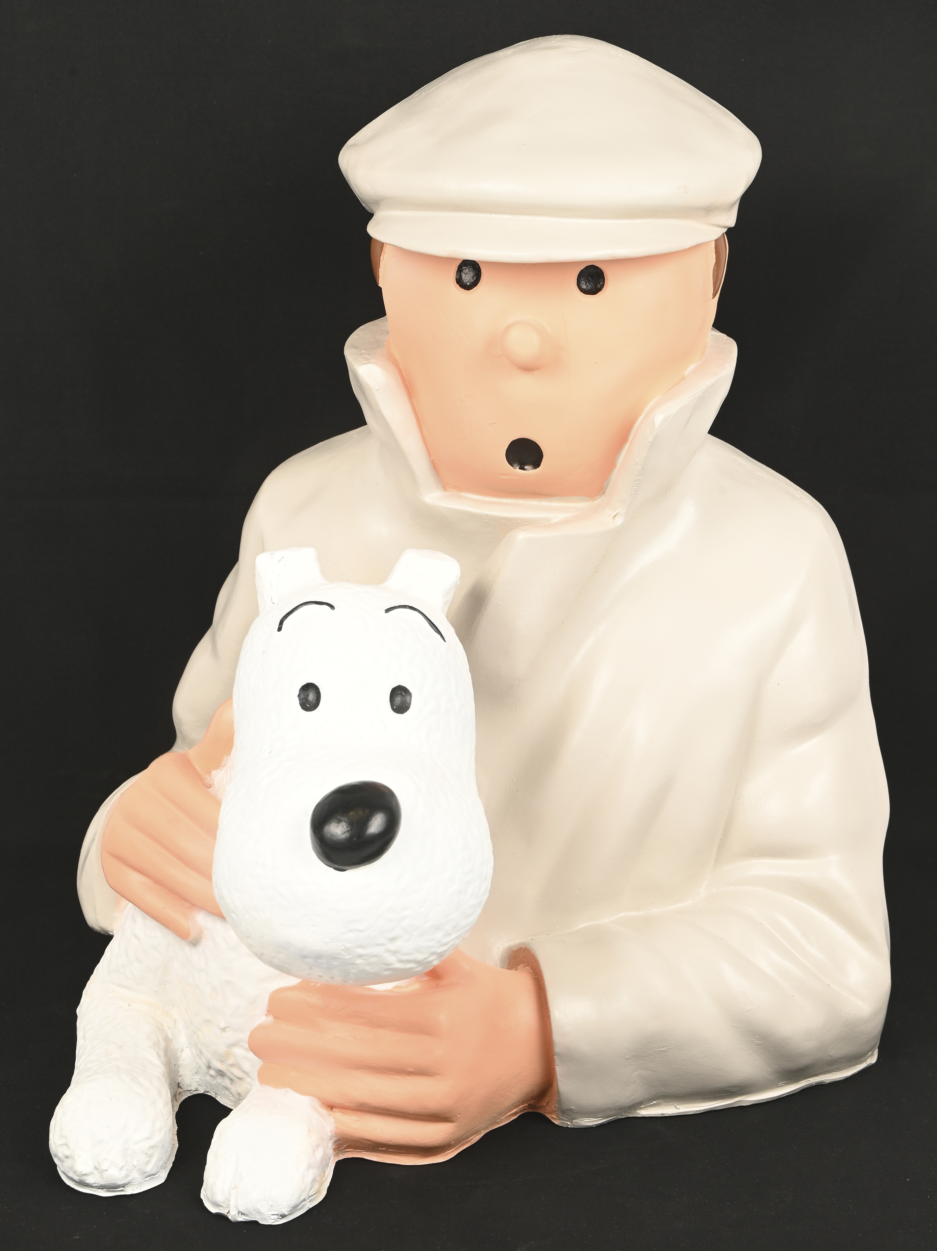 Kuifje en de zwarte rotsen, een kunststoffen beeld van onze stripheld.