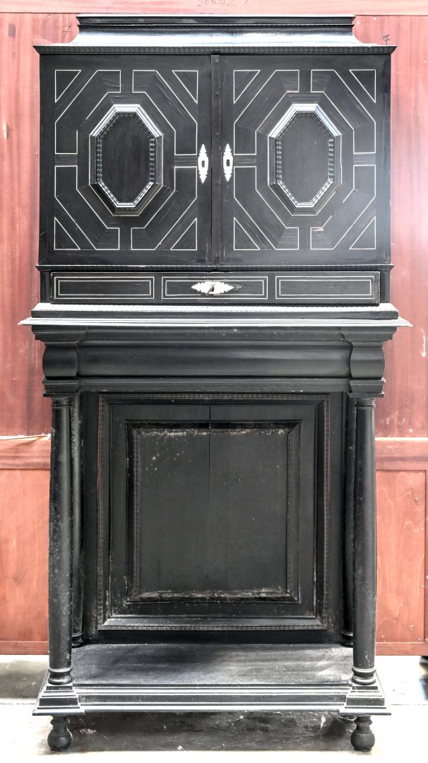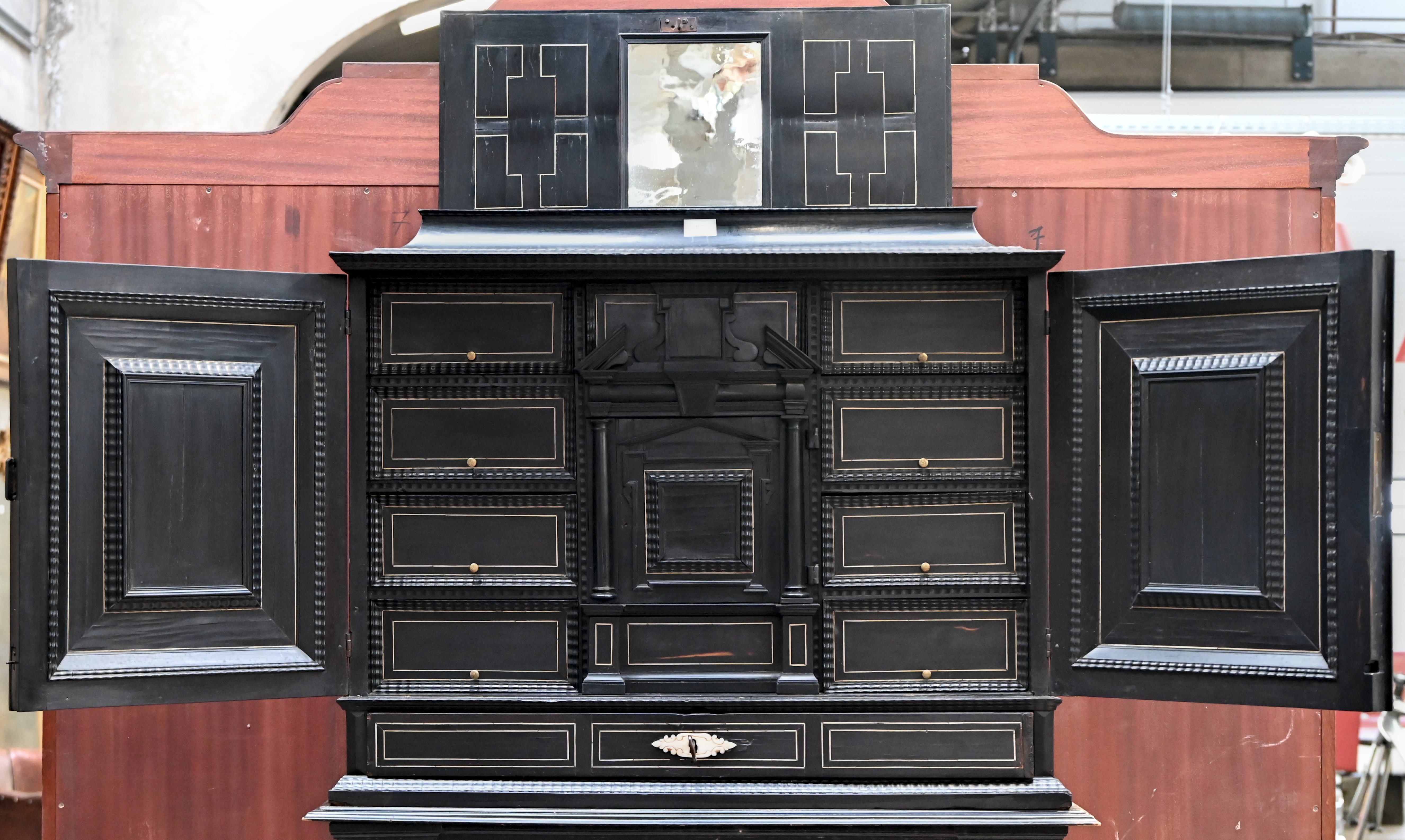Two finely carved palm wood figurines. One of Moses, the other of Charlemagne (without hands). Neorenaissance, around 1900.No longer availableDim. H. 30 cmEstimate: € 100 / 120 -