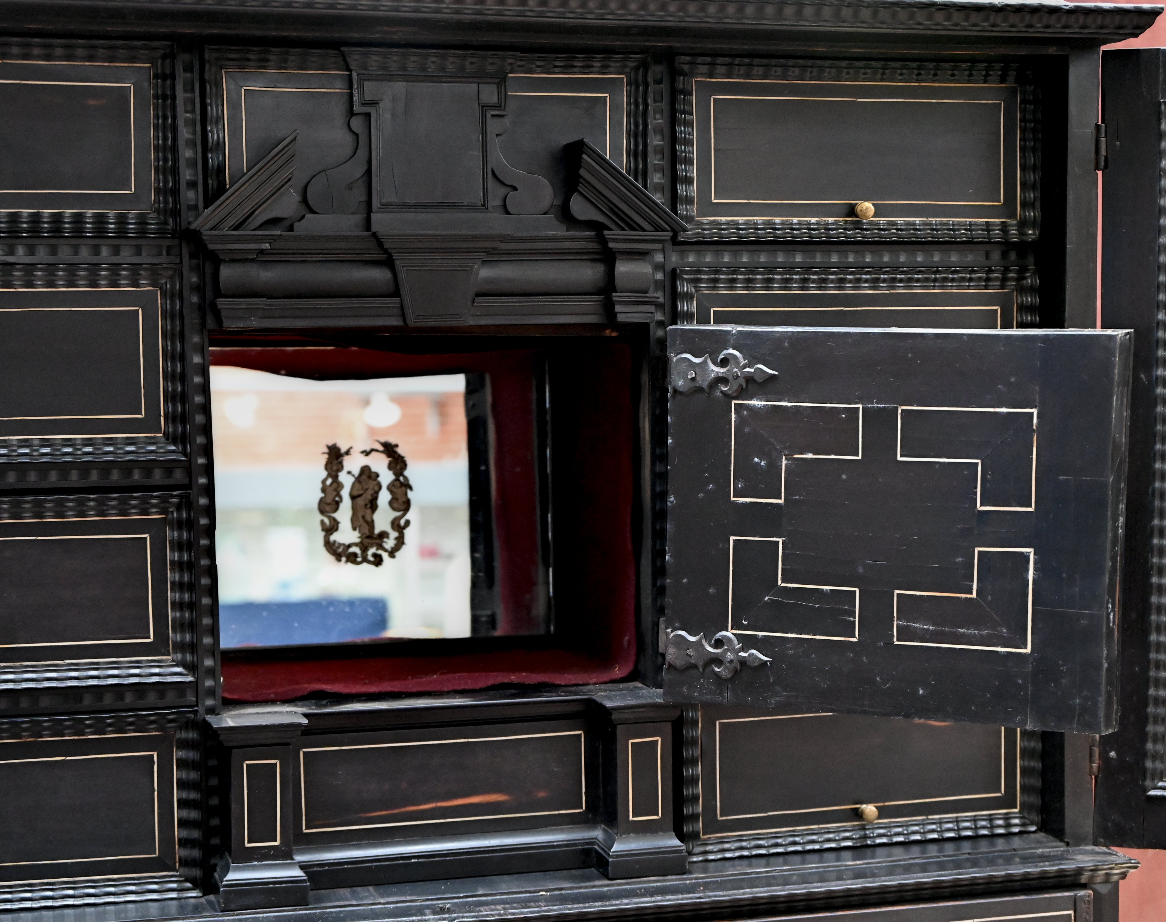 Twee fijn gebeeldhouwde palmhouten beeldjes. Het ene van Mozes, het andere van Karel de Grote (zonder handen). Neorenaissance, omstreeks 1900.