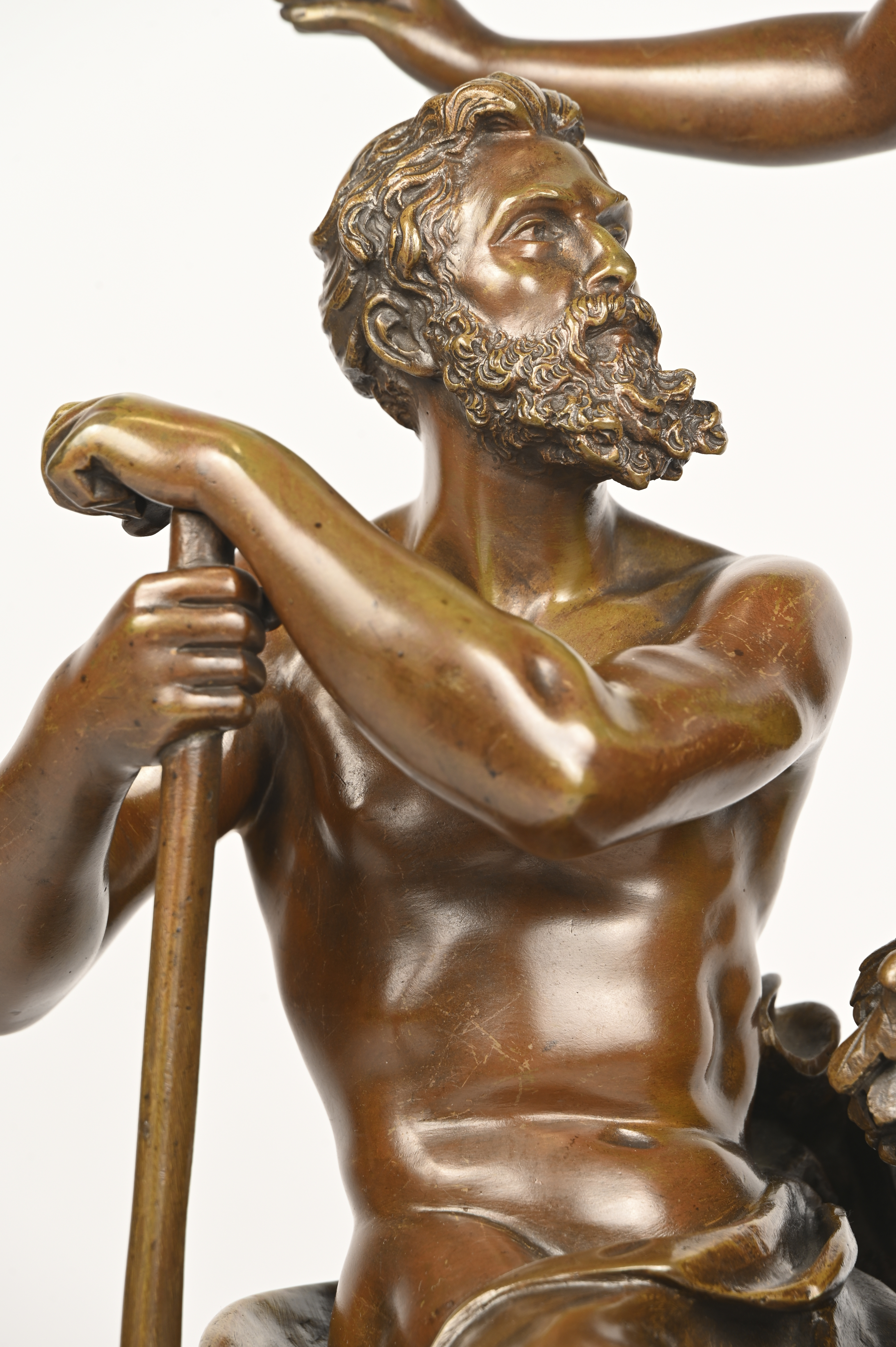 "Faun with child and putti," a terracotta sculpture, signed Clodion. Glued goat's leg. -