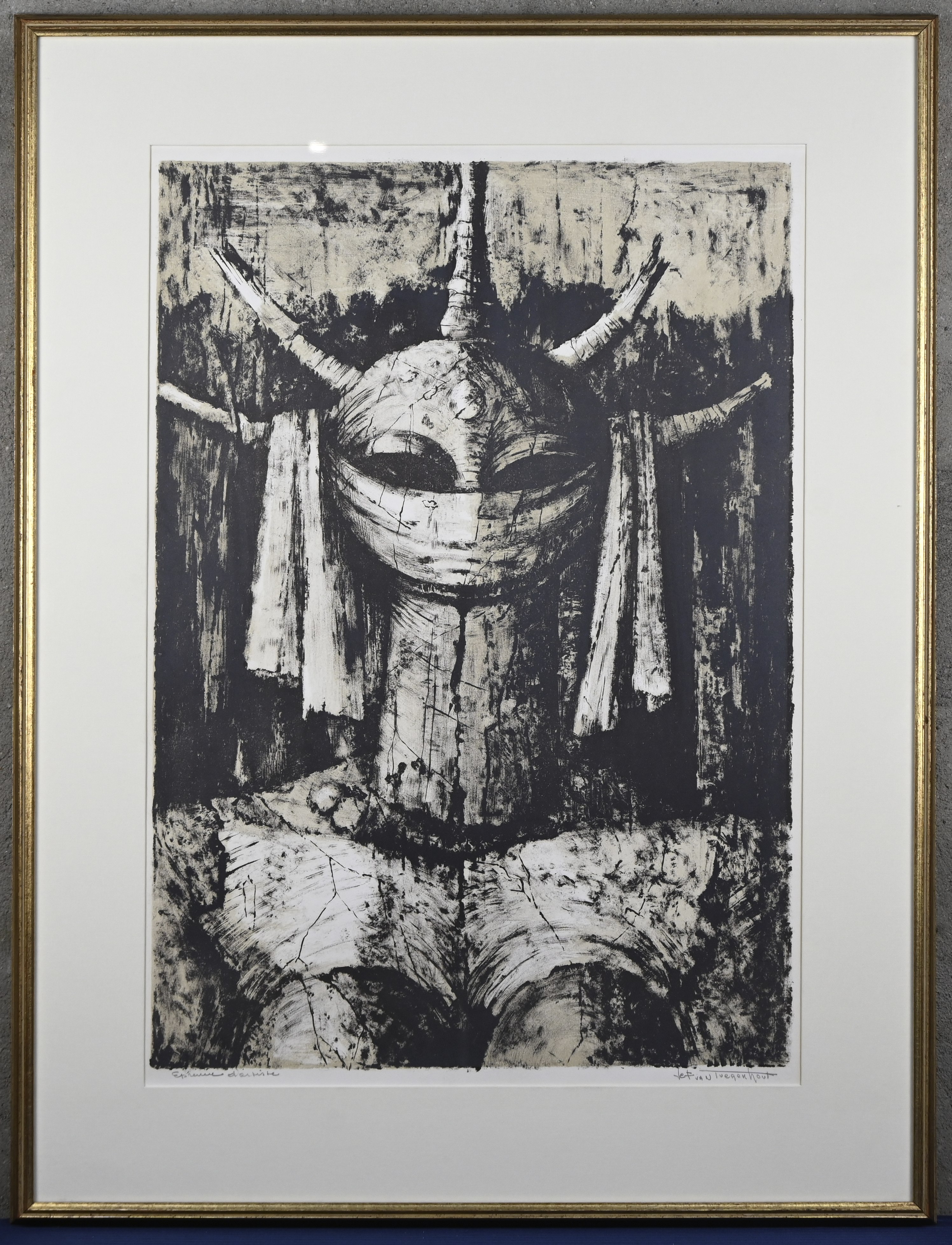 ‘Kultur, allegorie op de eerste wereldoorlog’, een monochrome ets. Getekend; J. De Bruycker. 2e staat, gedrukt op twee exemplaren.