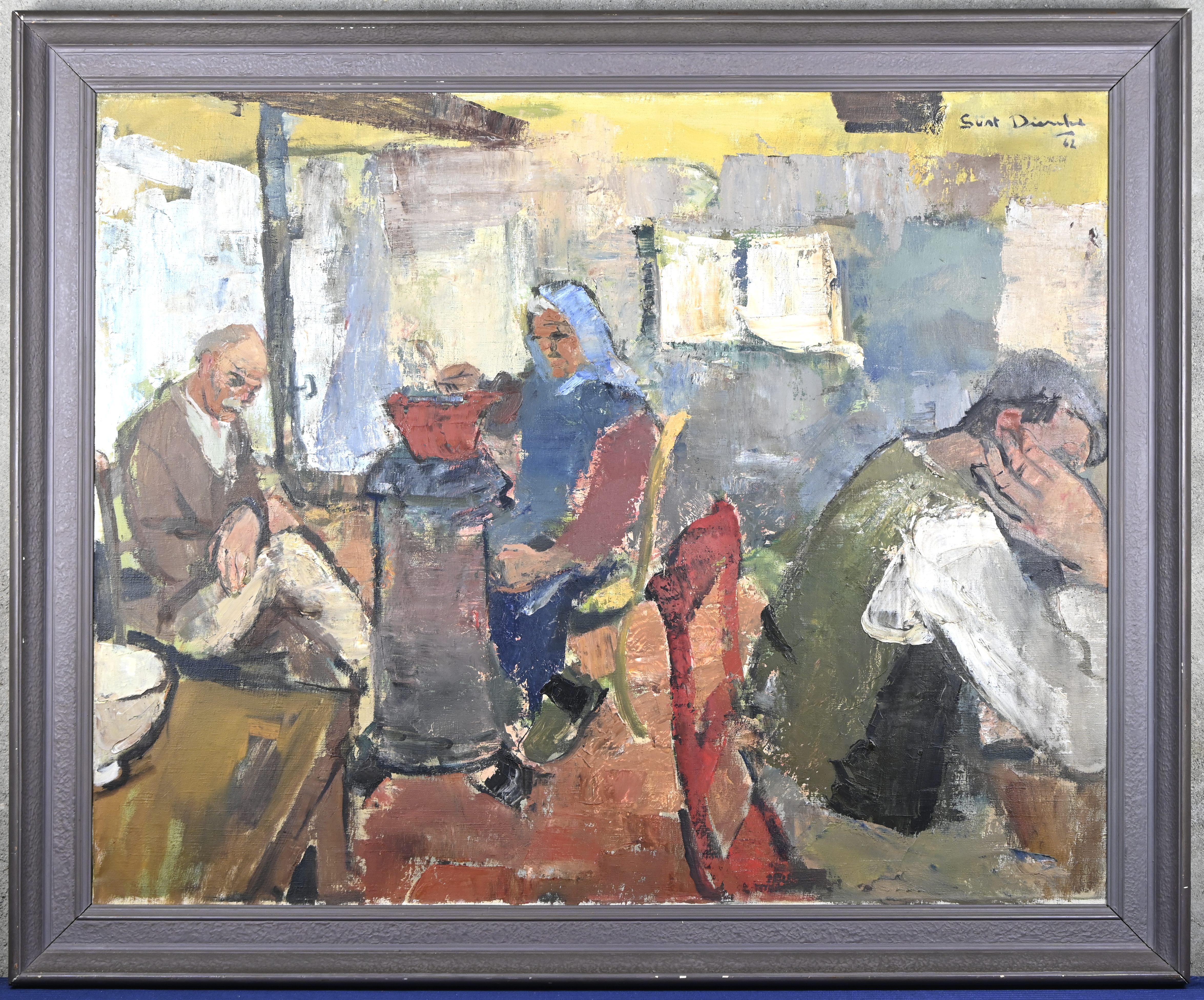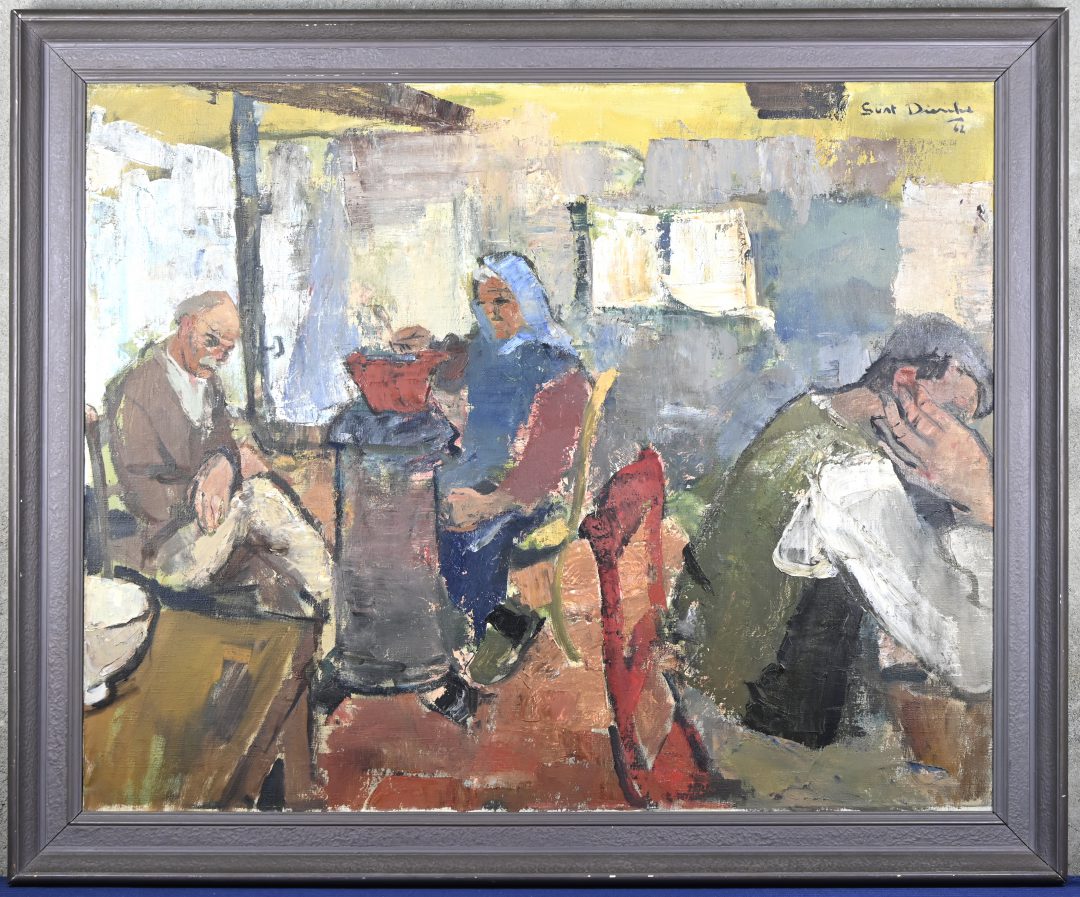 “Interieurzicht”, een schilderij, olieverf op doek, gesigneerd.