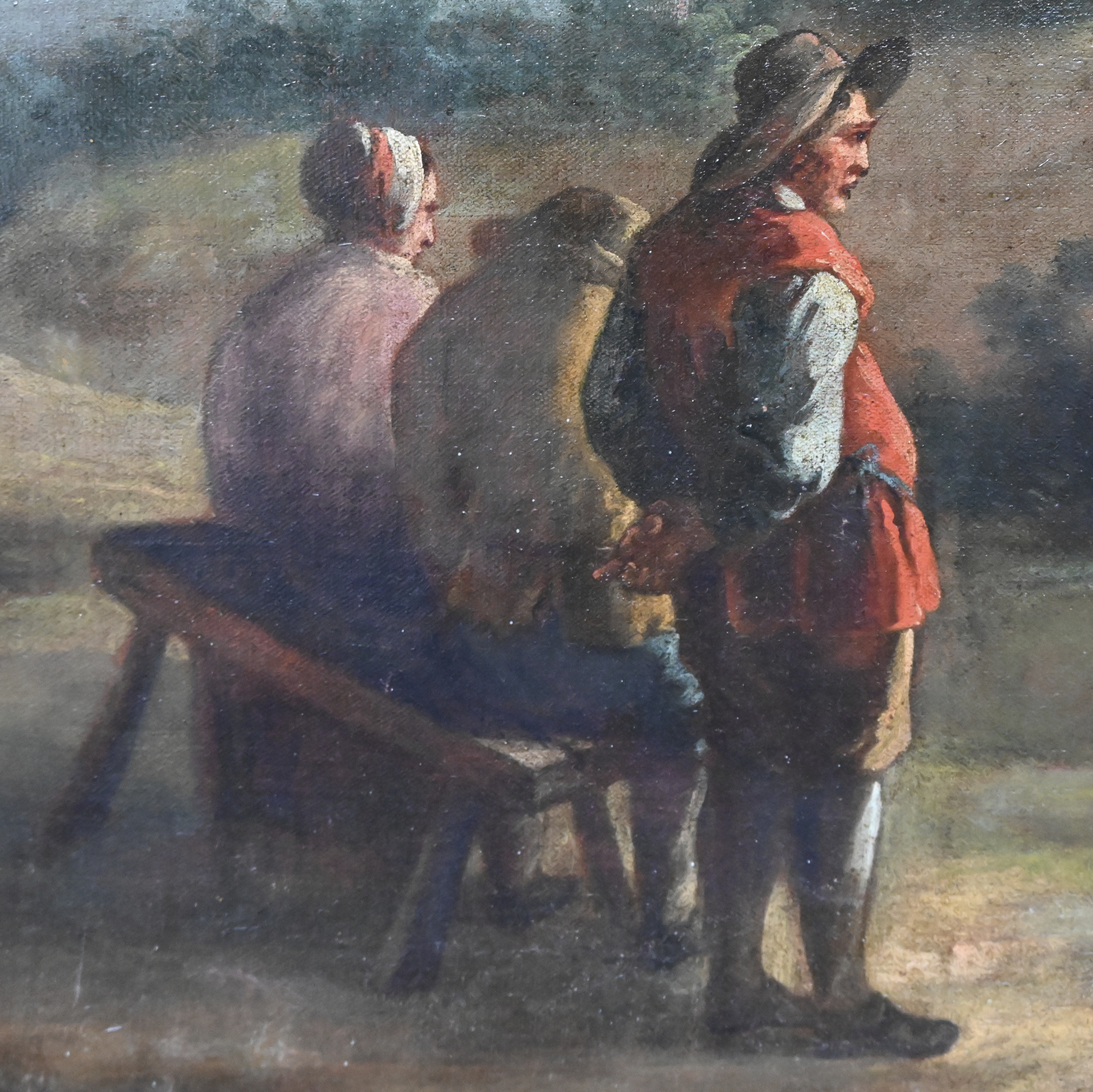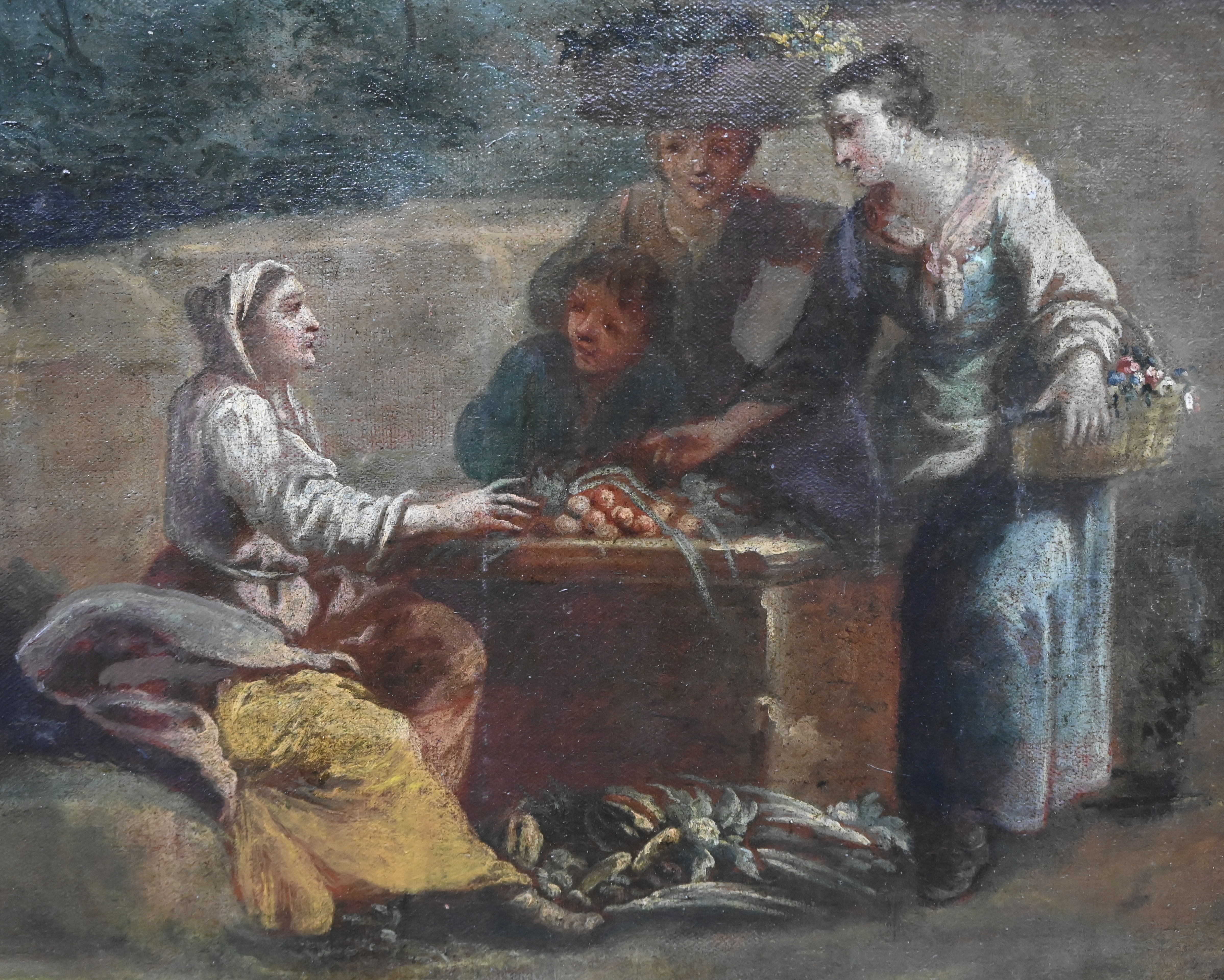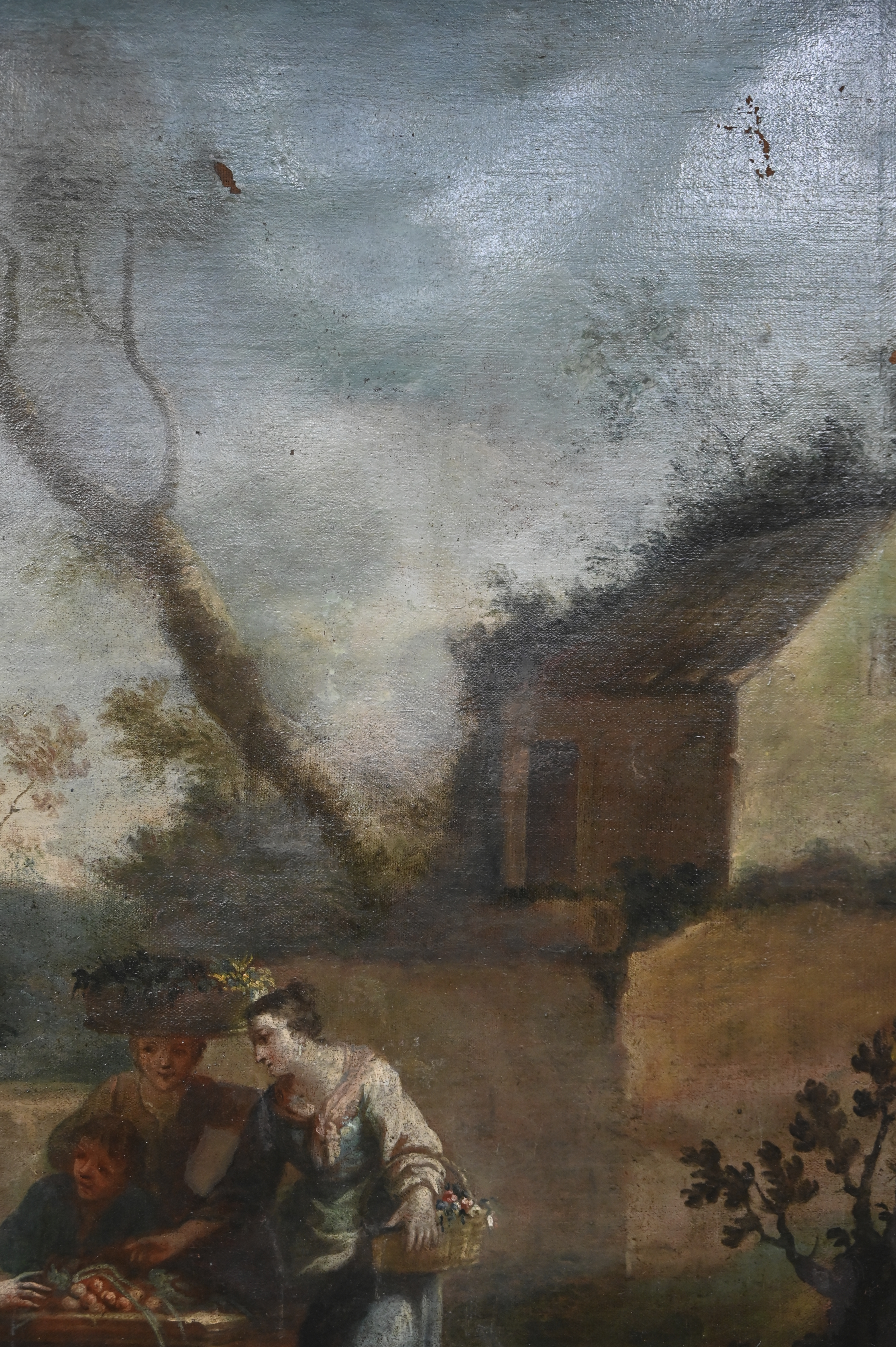 "Landscape with figures". A painting, oil on canvas. Venetian school, late 18th century. Shows signs of wear.