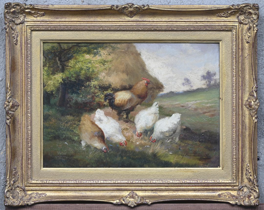 ‘Landscape with poultry’, oil on panel. Signed J. L. Van Leemputten.