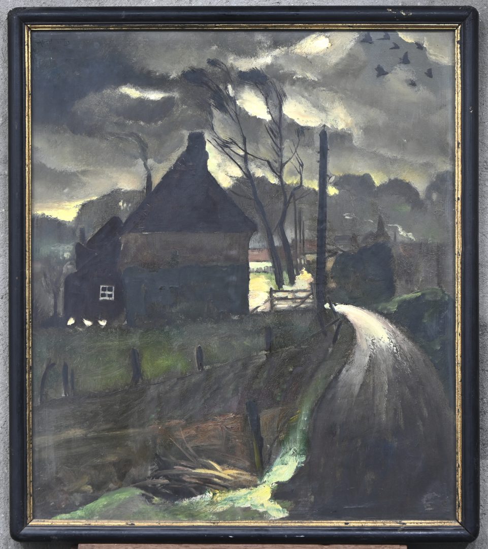 ‘Landscape with Stormy Weather’, oil paint on cardboard. Signed and dated ‘Marcel Gillis 1933’.