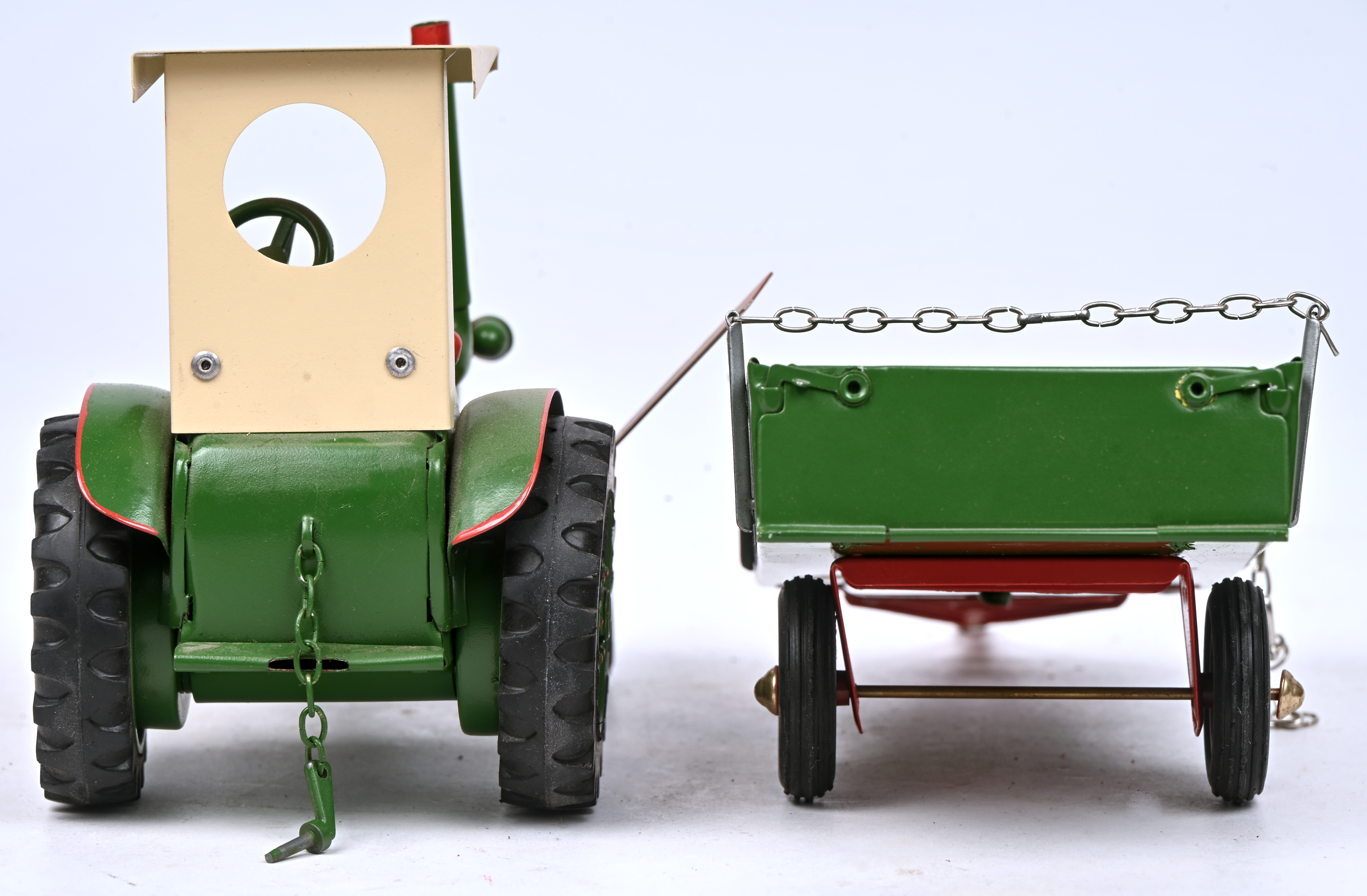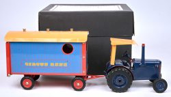 ‘Ziskuswagen’, a tinplate gypsy wagon with ‘Circus Renz’ inscription. Model T-176, number 35 out of 400. With original packaging. Also includes a tinplate tractor from set T-175. -