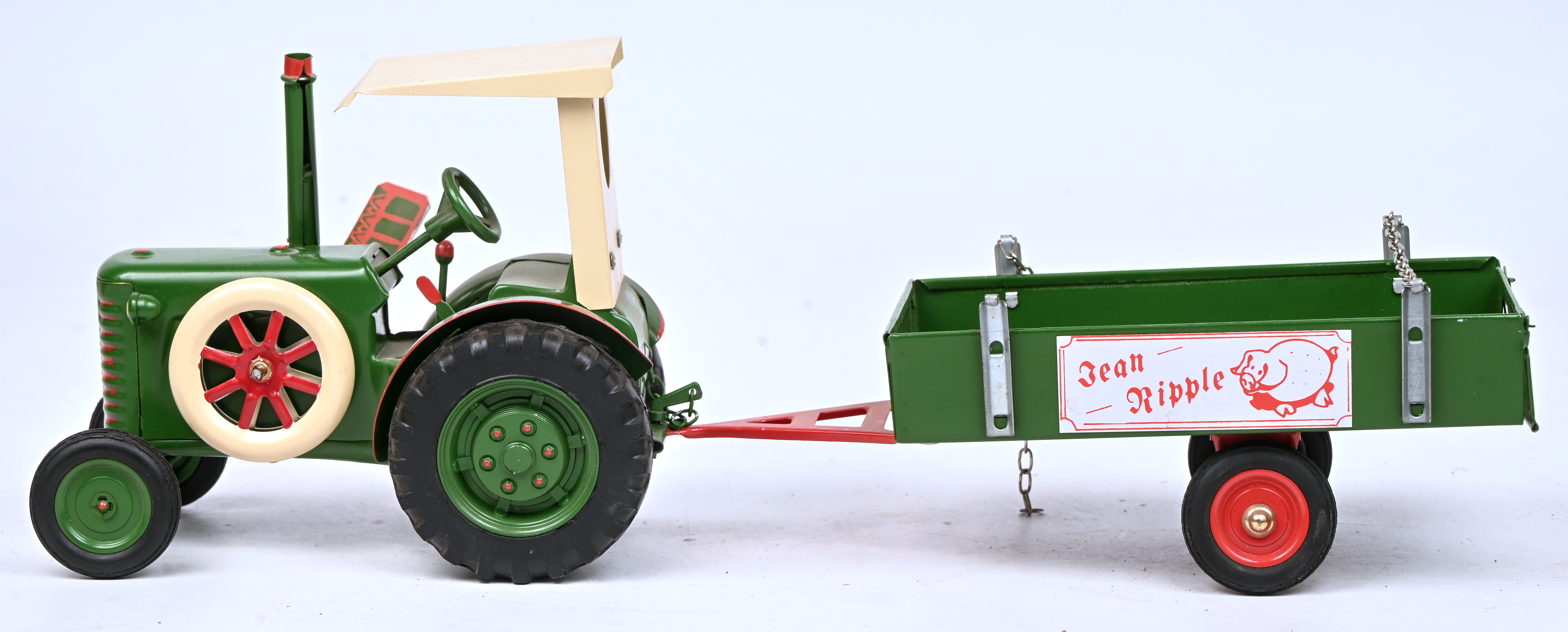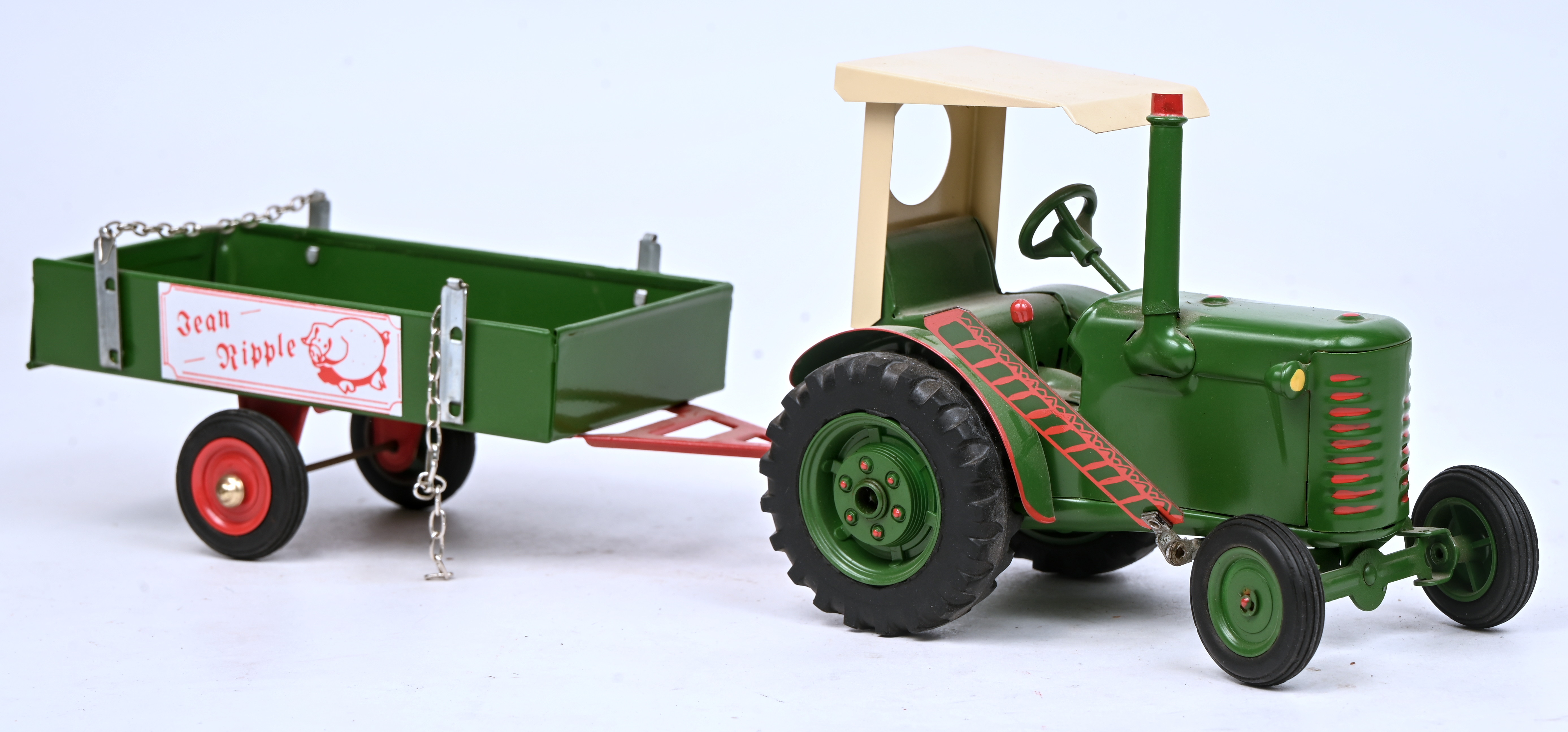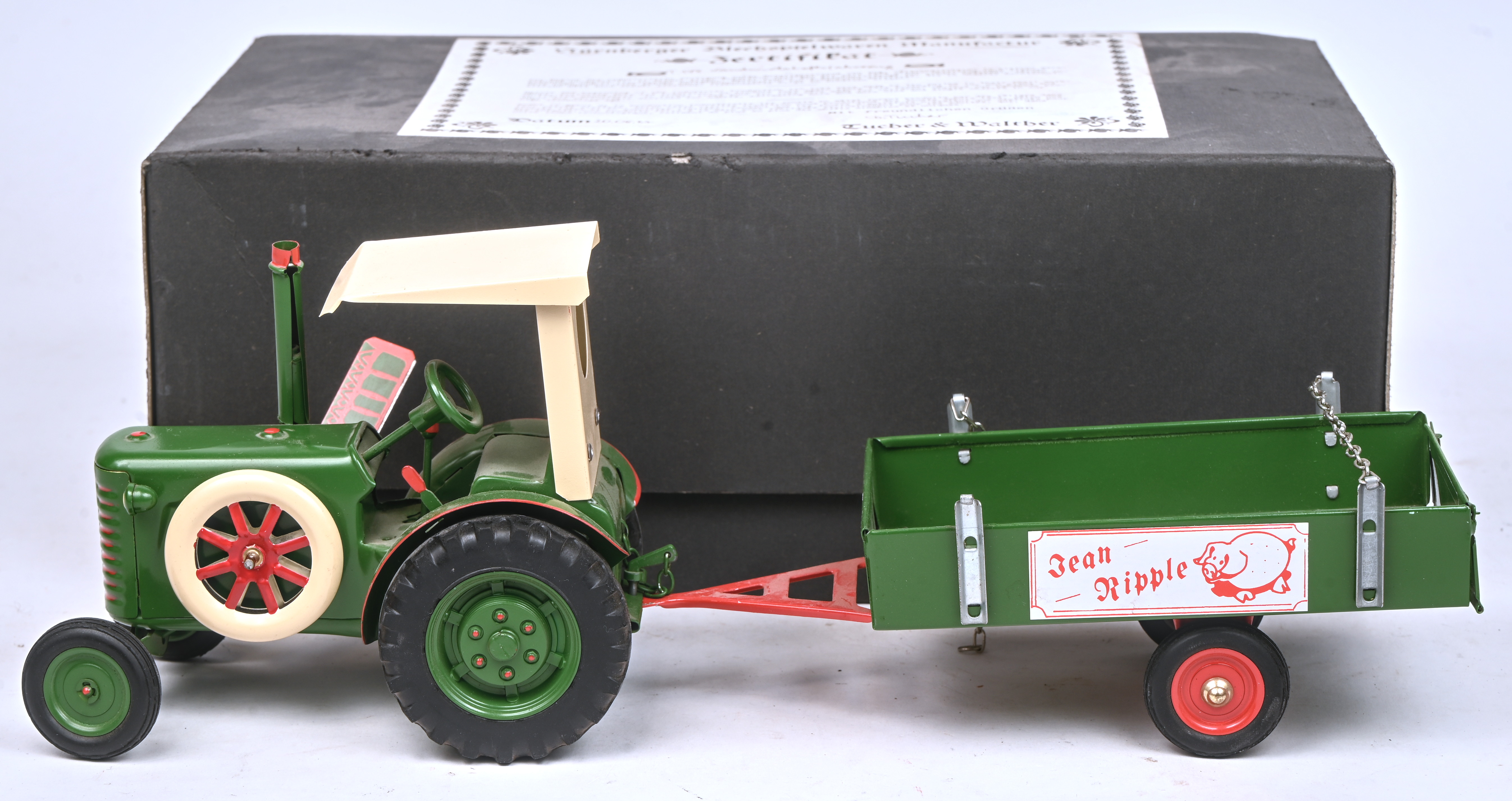 #28Nürnberger Bleichwaren Tucher & Walter‘Ziskuswagen’, een blikken pipowagen met opschrift ‘Circus Renz’. Model T-176, nr. 35 uit een oplage van 400 exemplaren. Met OVP. Toegevoegd een blikken tractor uit de set T-175.