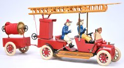 ‘Feuerwehr mit Anhänger’ is a wind-up tin fire truck with a trailer. Model T-182, number 54 out of an edition of 400 copies. -