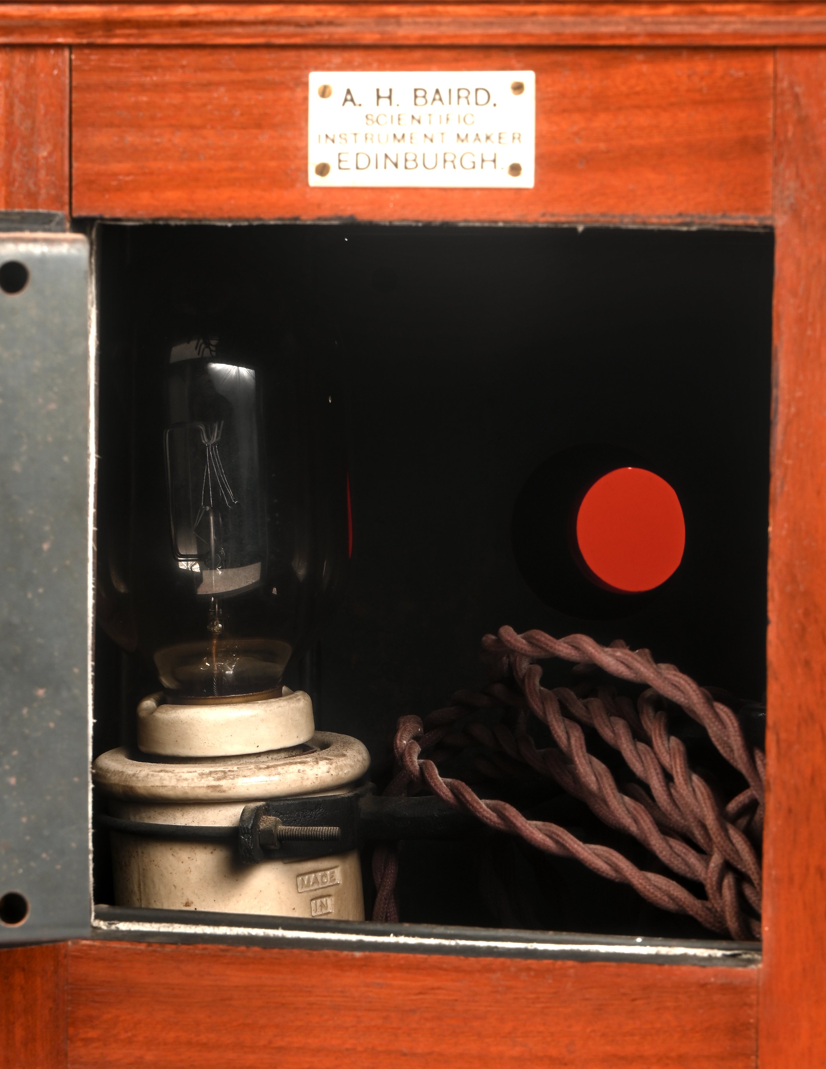 “Landbouwersgezin”. Een glas-in-loodraam gemonteerd op een lichtbak. Getekend; Leo Vingerhoets.
