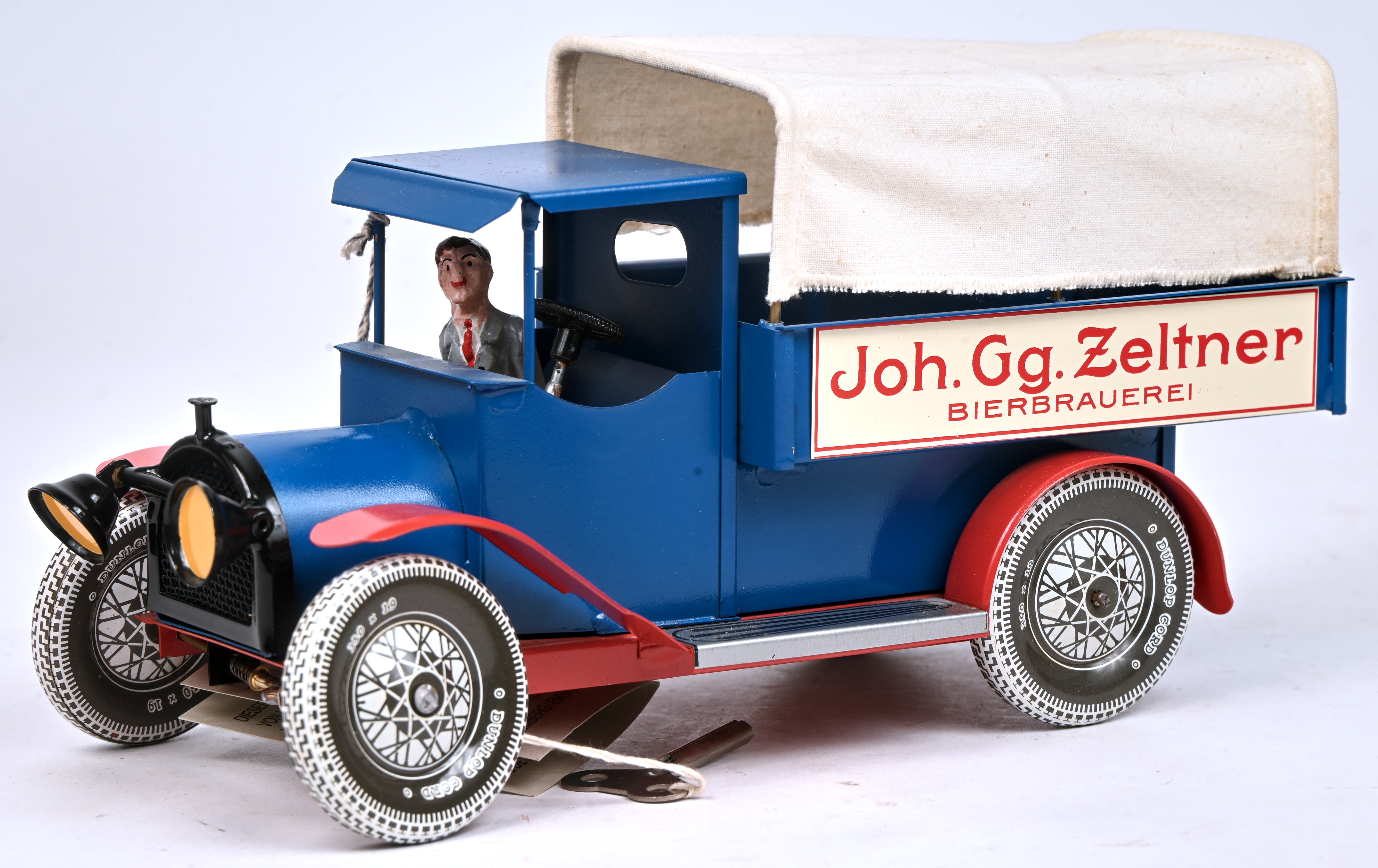 #17Nürnberger Bleichwaren Tucher & WalterPeriod: 1988‘Feuerwehr mit Anhänger’, een opwindbare blikken brandweerwagen met aanhanger. Model T-182, nr 54 uit een oplage van 400 exemplaren.