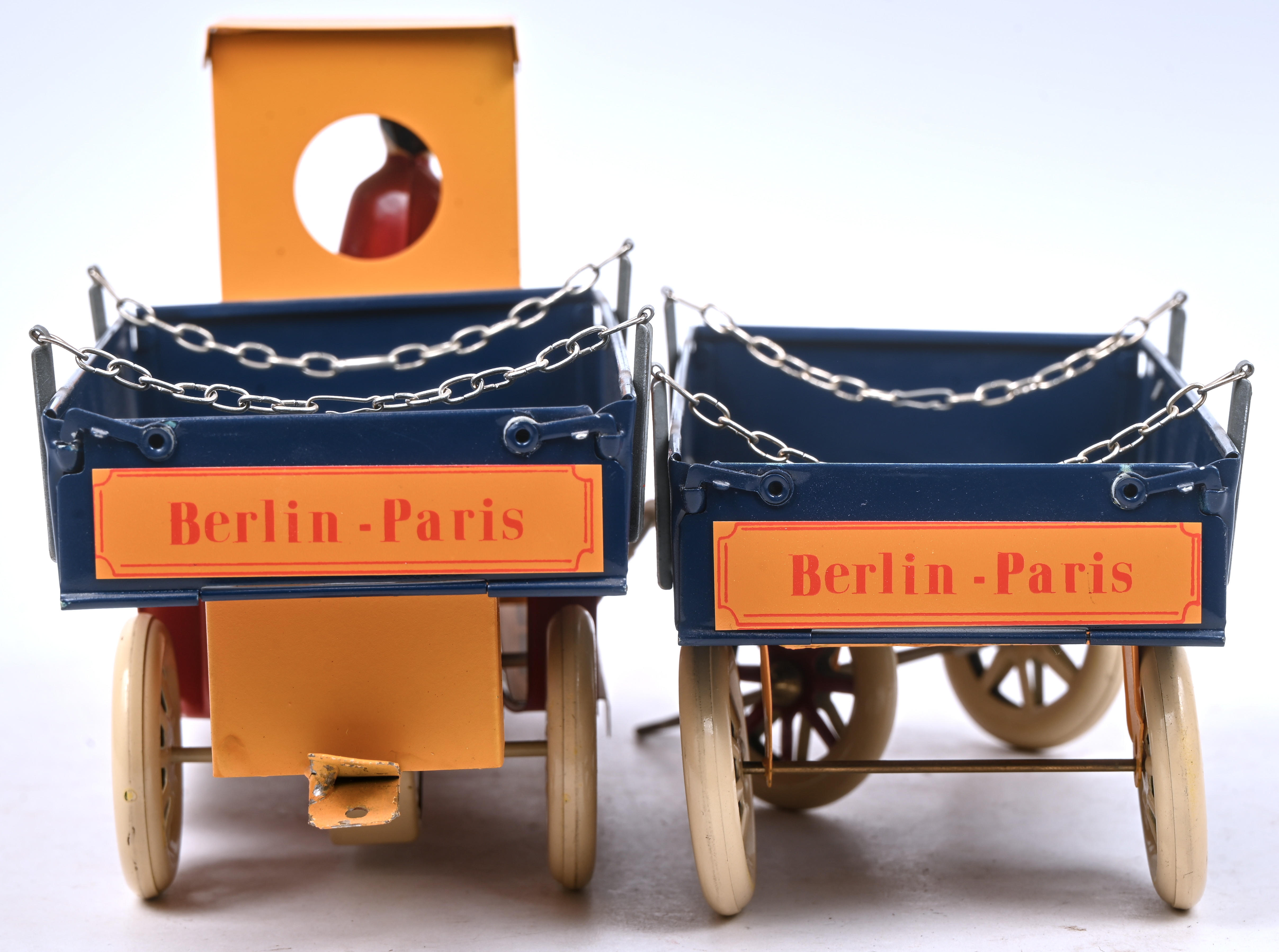 #27Nürnberger Bleichwaren Tucher & Walter‘Landwirtschaftsfahrzeug’, een blikken tractor met aanhanger. Model T-178, nr 29 uit een oplage van 500 exemplaren. Met OVP.