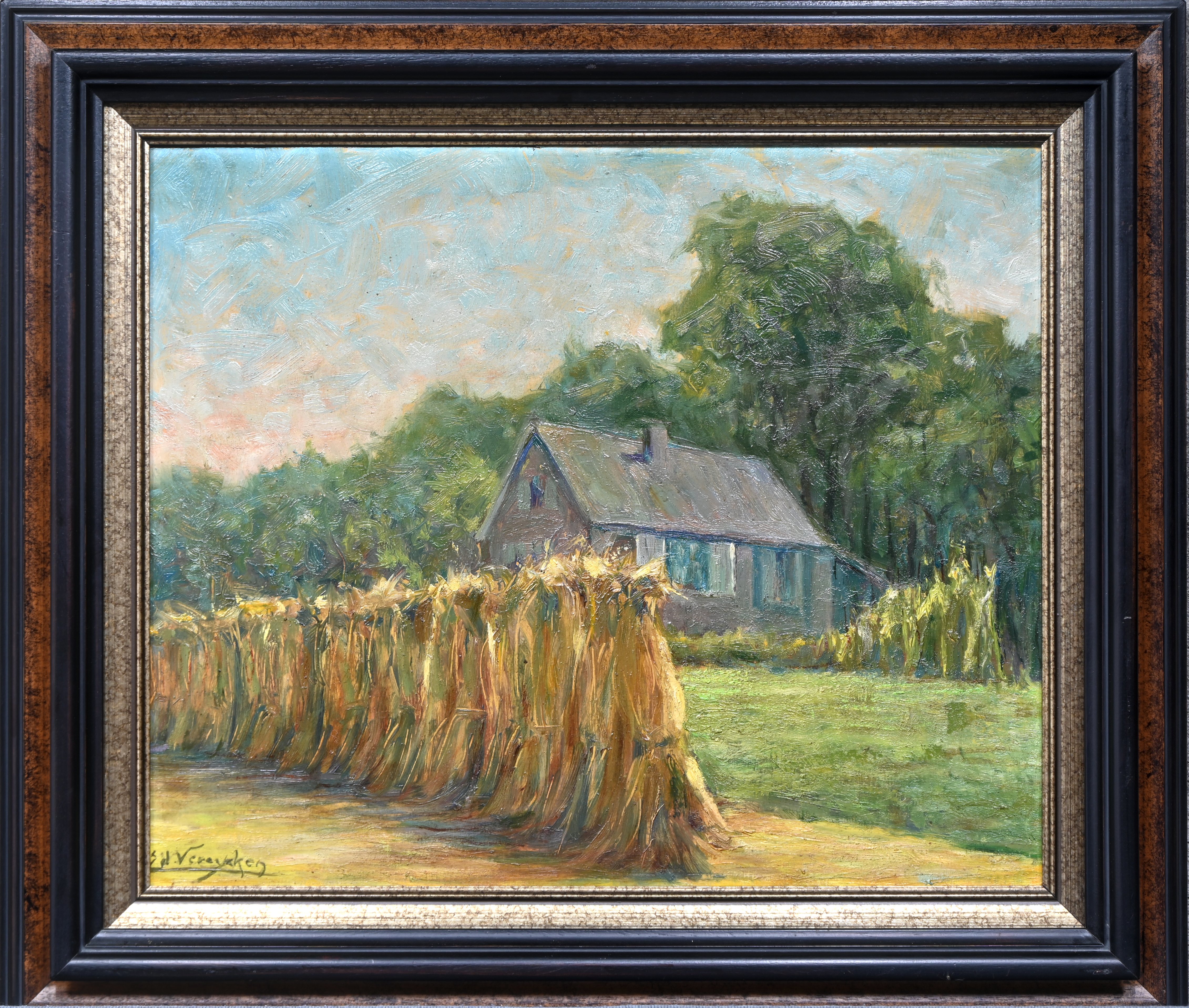 "Kempen farmhouse". Oil on panel. Signed lower left. -