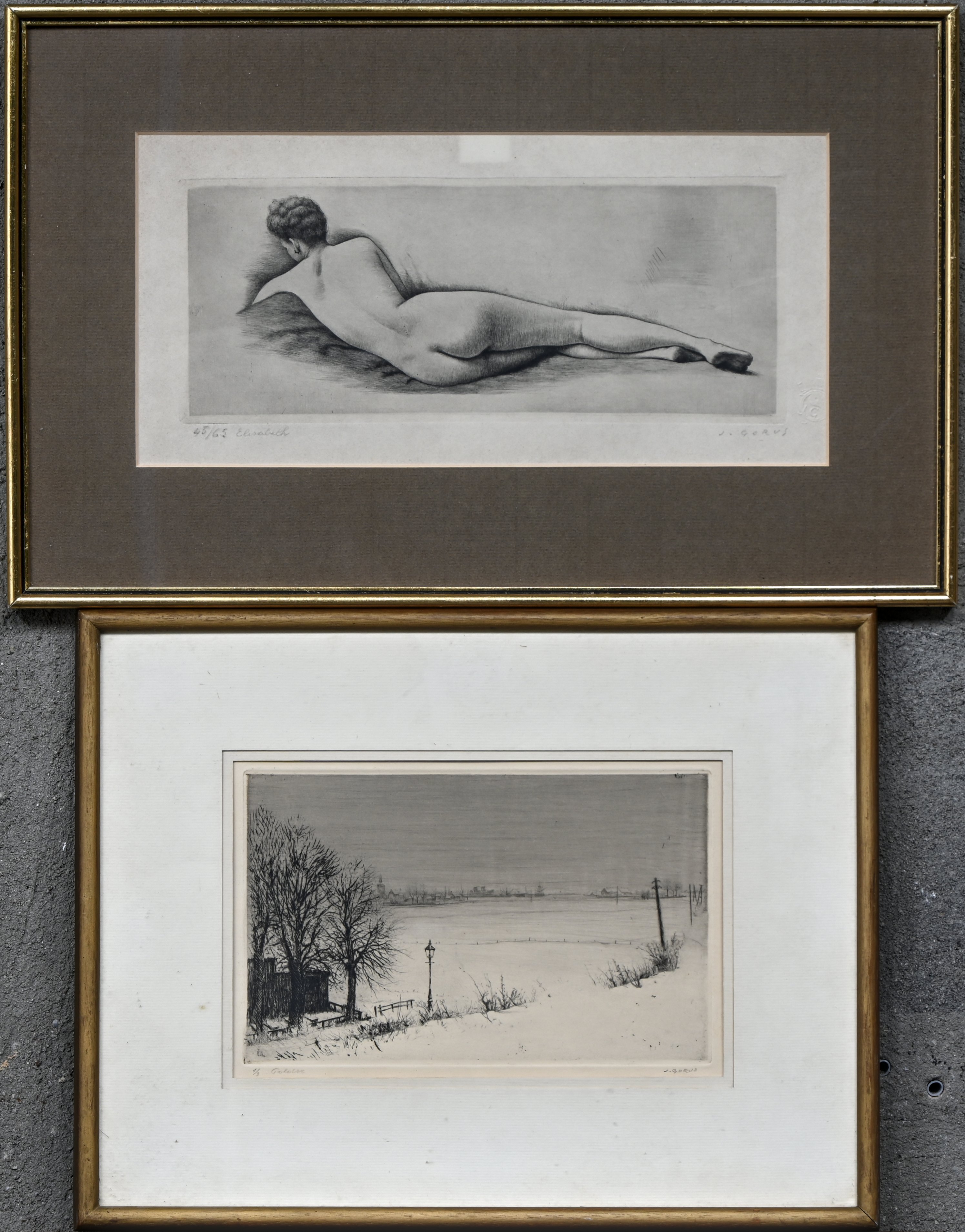 'Fishermen, a monochrome etching. Signed A. Oleffe.' -